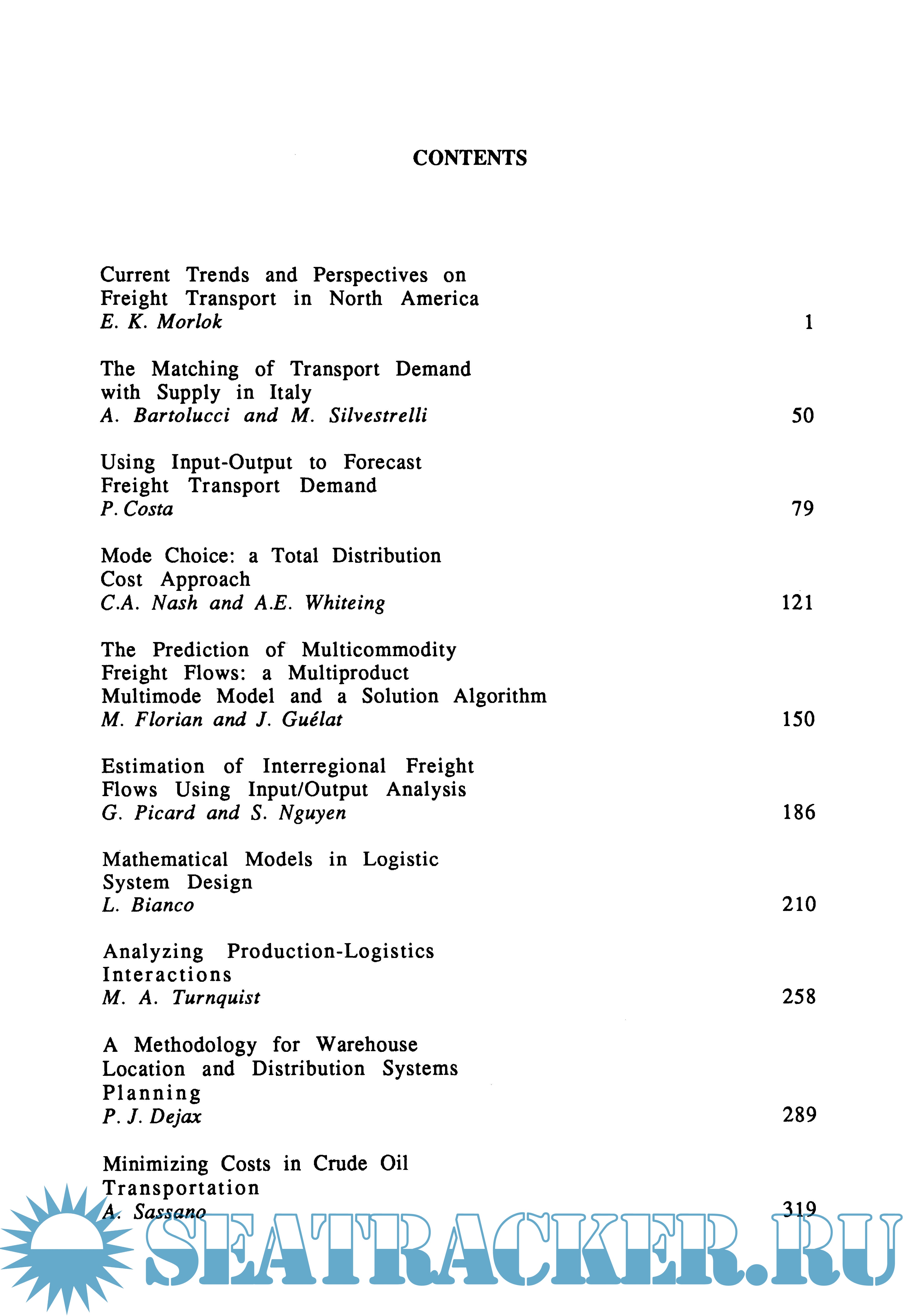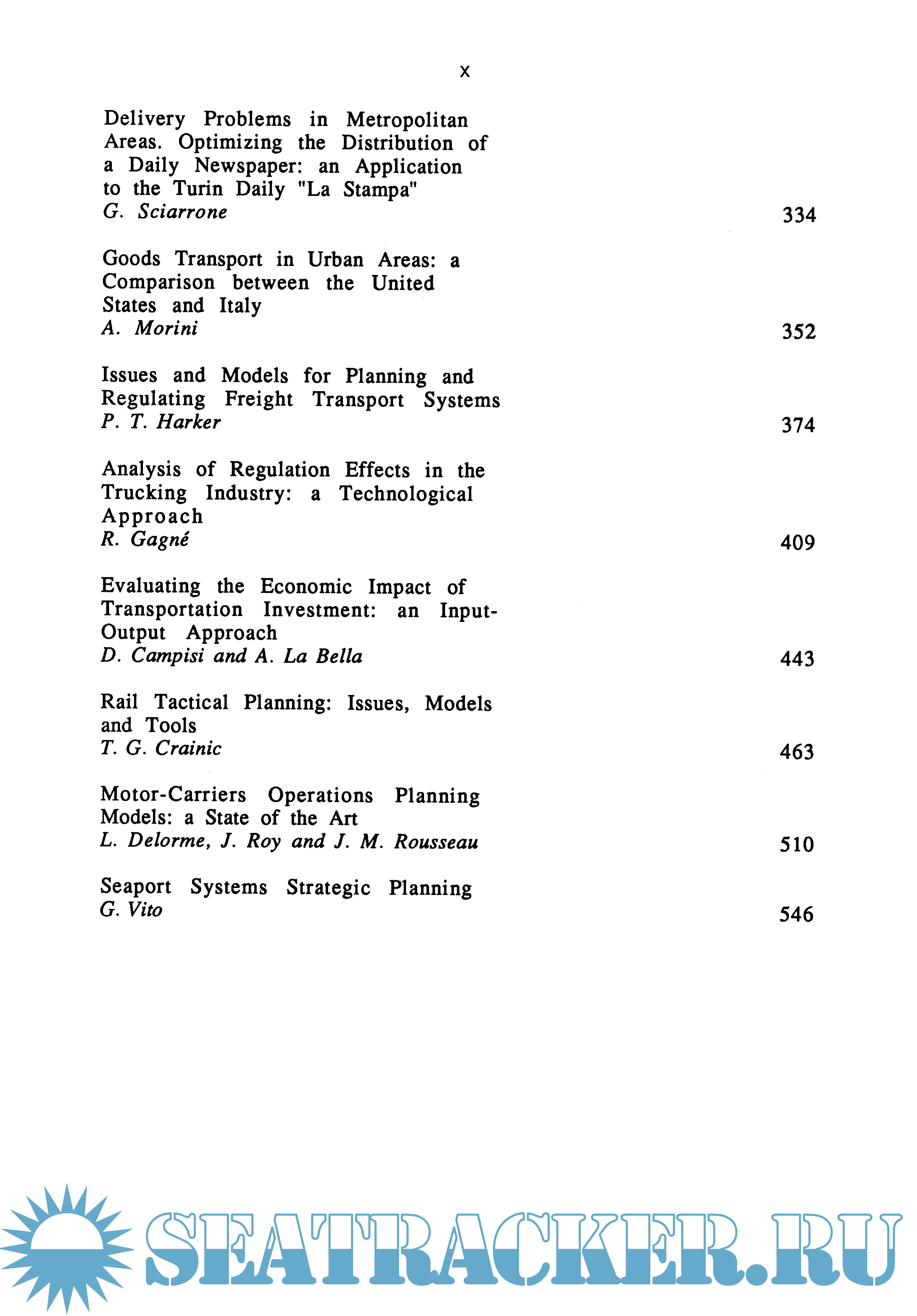 Year: 1988 Language: english Author: M. Beckmann and W. Krelle Genre: Conference Format: PDF Quality: eBook Pages count: 582 Description: Freight transport has a great economic relevance in most countries, since the efficiency of the transportation system and the associated pattern of transportation costs influence the location decisions of the firms and the regional/sectoral production levels. The possibility of improving the performance of the freight transport system are closely related to both technological innovation and the availability of advanced planning tools. The latter aspect is relatively less explored than other planning issues in transportation, like, for instance, urban transportation; therefore this volume attempts to fill a gap in the existing literature presenting selected contributions covering the main topics in freight transport planning, Le.: - analysis of current trends in developed countries; - demand analysis and forecasting; - flows simulation and prediction; - production and logistics; - shipment and delivery problems; - regulation problems; - investment evaluation.