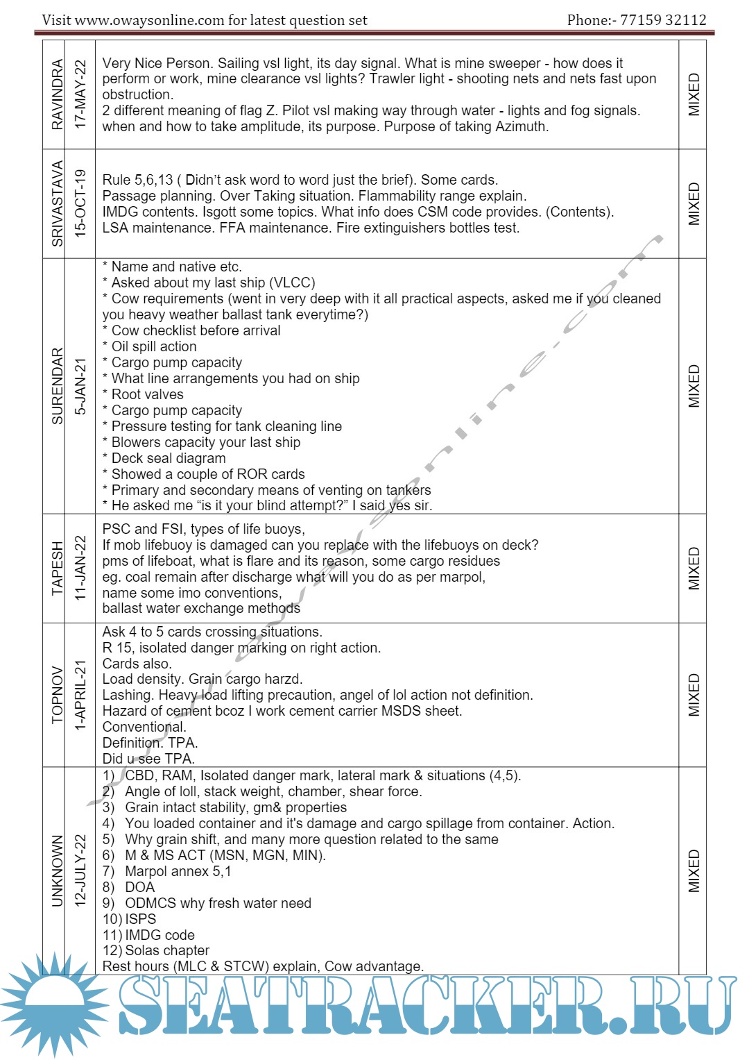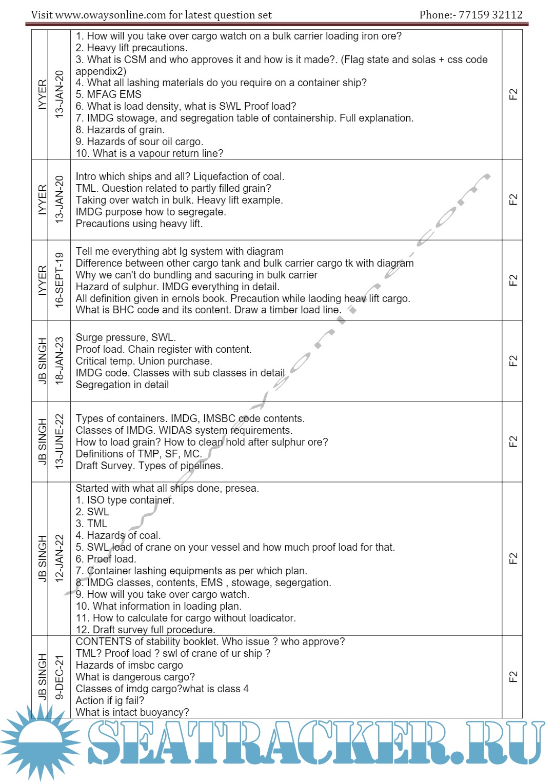 Description: 2nd Mate MMD Orals Exams Surveyor Question Set Mumbai.Question set arranged in the order Functions / surveyors / Dates.