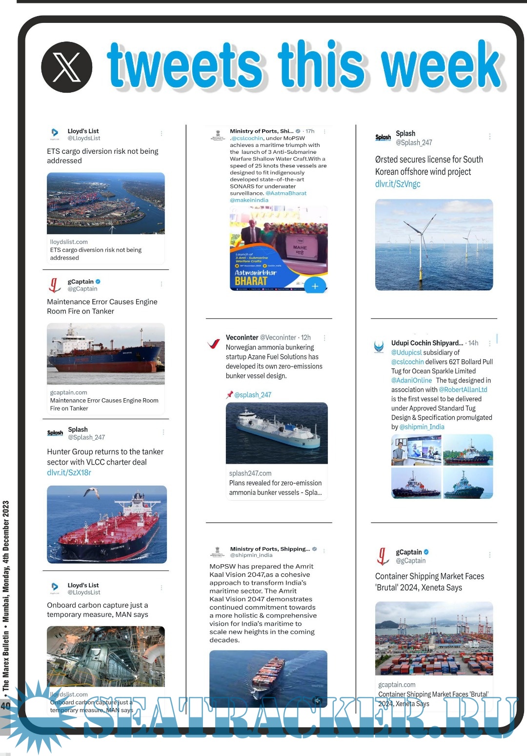 Year: 2023 Language: english Author: Marex Media Genre: Periodical (magazine) Edition: Vol.XXIII | No. 97/23 Format: PDF Quality: eBook Pages count: 44 Description: The No 1 Twice weekly employment magazine for Seafarers. The Leading magazine for seafarers to locate Ship-board Employment opportunities, Training Institutes, Shipping companies. Online version: https://issuu.com/marexmediapvtltd Additional info: Dated: 4 December 2023.