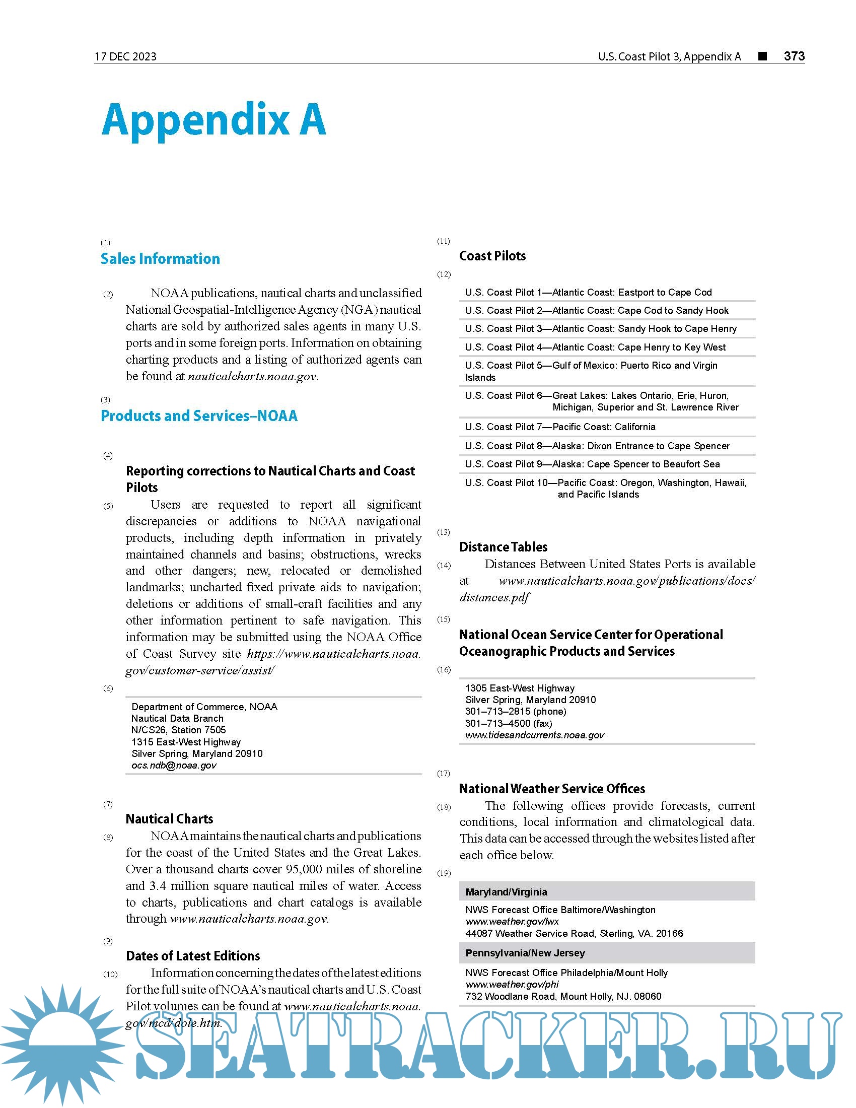Description: The United States Coast Pilot® supplements the navigational information shown on NOAA nautical charts. The publication is continually updated and maintained from inspections conducted by NOAA survey vessels and fi eld parties, corrections published in Notices to Mariners, information from other Federal agencies, State and local governments, maritime and pilots’ associations, port authorities, and concerned mariners.