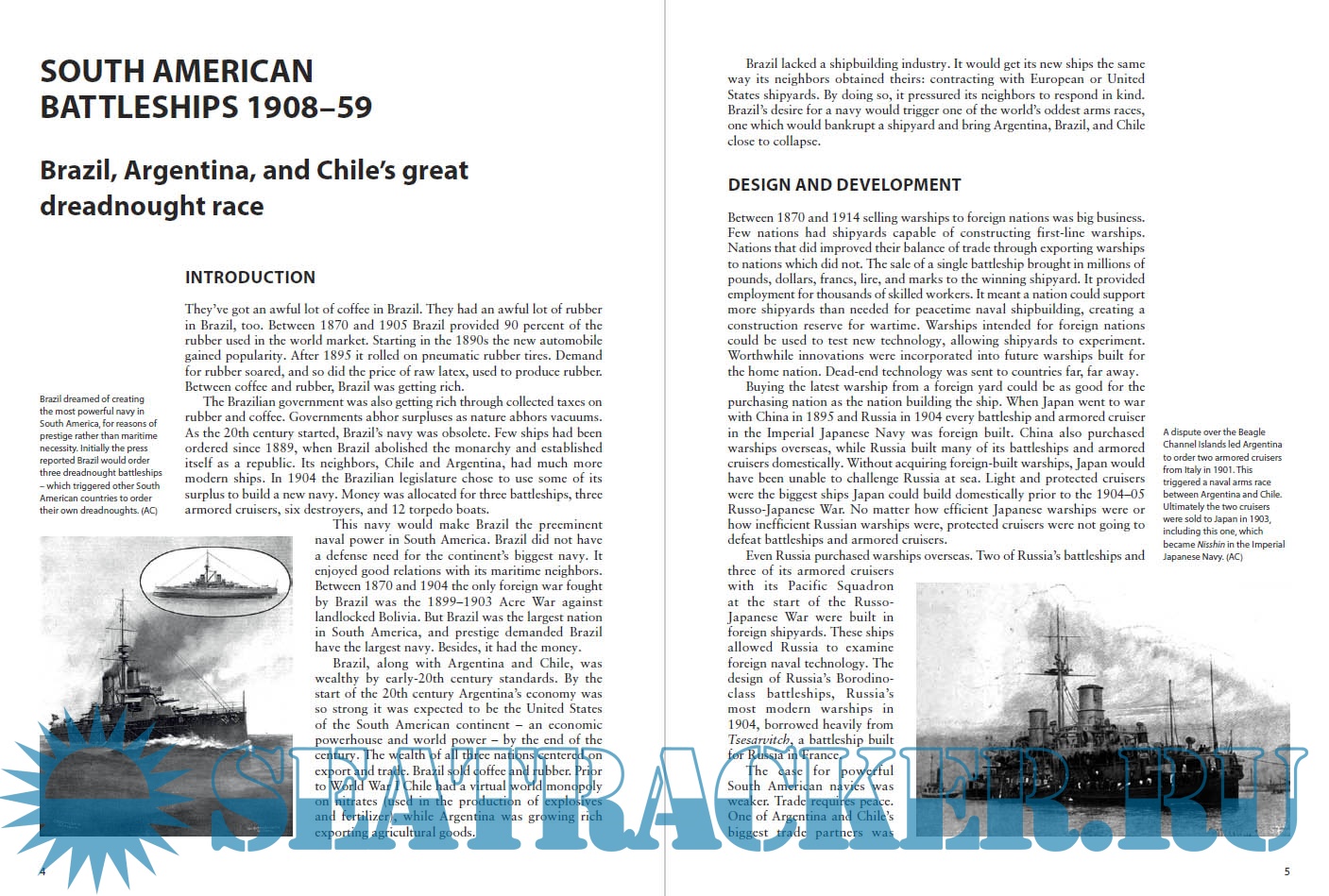 Year: 2018 Language: english Author: Mark Lardas Genre: History Publisher: Osprey Publishing Edition: New Vanguard 264 Format: PDF Quality: eBook Pages count: 49 Description: In 1908 the most incredible naval arms race in history began. Flush with cash from rubber and coffee, Brazil decided to order three of the latest, greatest category of warship available – the dreadnought battleship. One Brazilian dreadnought by itself could defeat the combined gunnery of every other warship of all the other South American nations. Brazil's decision triggered its neighbour Argentina to order its own brace of dreadnoughts, which in turn forced Chile (which had fought boundary disputes with Argentina) to order some. In the process, the South American dreadnought mania drove the three participants nearly into insolvency, led to the bankruptcy of a major shipyard, and triggered a chain of events which led Turkey to declare war on Great Britain. It also produced several groundbreaking dreadnought designs and one of the world's first aircraft carriers.