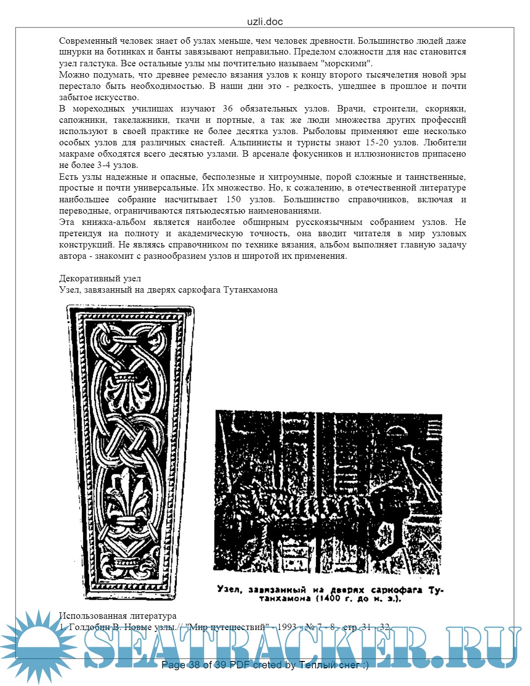 Описано 250 видов узлов, есть иллюстрации и список литературы