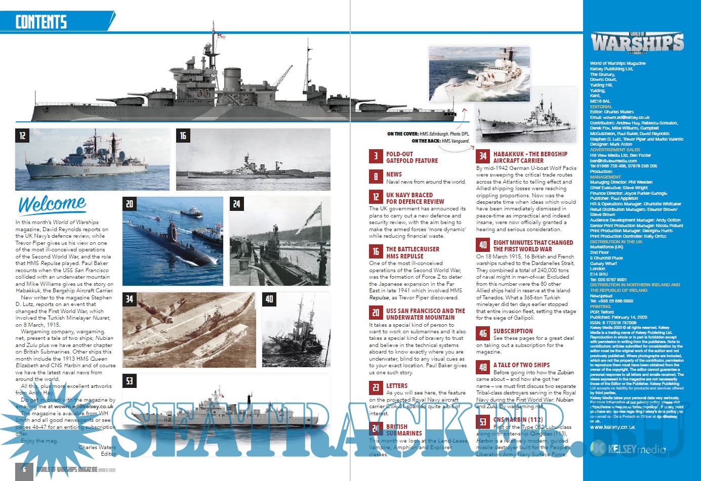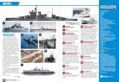Description: This 56-page magazine will cover such battles and battleships starting with the steel-clad warships of the 1900s, up to the modern day rulers of the seas – the highly sophisticated aircraft carriers and submarines of today.We will have a Naval news section from around the world, features on famous people, conflict at sea, fascinating historical accounts and exciting places of interest that you can visit today. World of Warships will also feature some excellent naval paintings from the brushes and easels of leading Naval artists, plus superb, highly detailed, fold-out, triple gatefolds, featuring profile artworks in every issue, created by Andrew Hay.The main thrust will of course be warships, encompassing destroyers, dreadnoughts, frigates, carriers, submarines et al, and their place in global naval history.