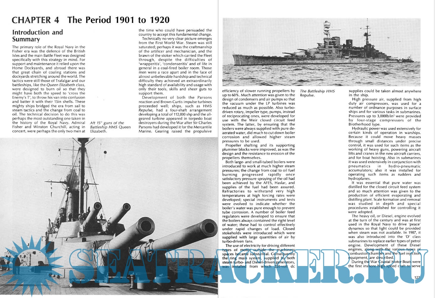 High calibre guns in massive armoured turrets were evolved. The remote control of both main and secondary armament was developed along with the associated hydraulic, pneumatic and electrical systems.