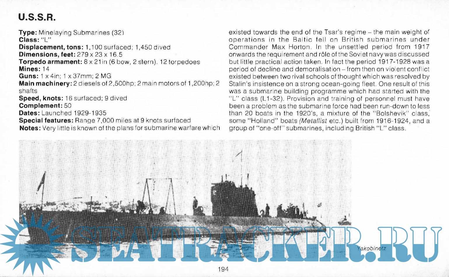 Description: Supplies photographs and data on the classes, displacement, dimensions, weaponry, speeds, and special features of twentieth-century American, British, German, French, Japanese, Russian, and Italian submarines