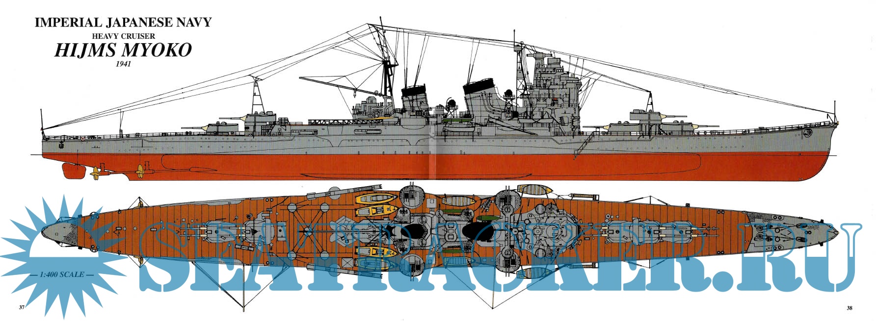 Description: The Myoko-class, IJN Myoko, 1944 was the lead ship of the four-member Myoko-class heavy cruiser, which was first Japanese vessel exceeding the Washington Naval Treaty limits. She was launched in 1927 and commissioned in 1929. She saw action in several battles during World War II, such as the Battle of the Java Sea, the Battle of Midway, and the Battle of Leyte Gulf. In 1944, she suffered severe damage from airstrikes and could not return to Japan. She remained in Singapore as a floating anti-aircraft platform with another heavy cruiser, Takao. They both survived the war, but were handed over to the Royal Navy and sunk as target practice in 1946.