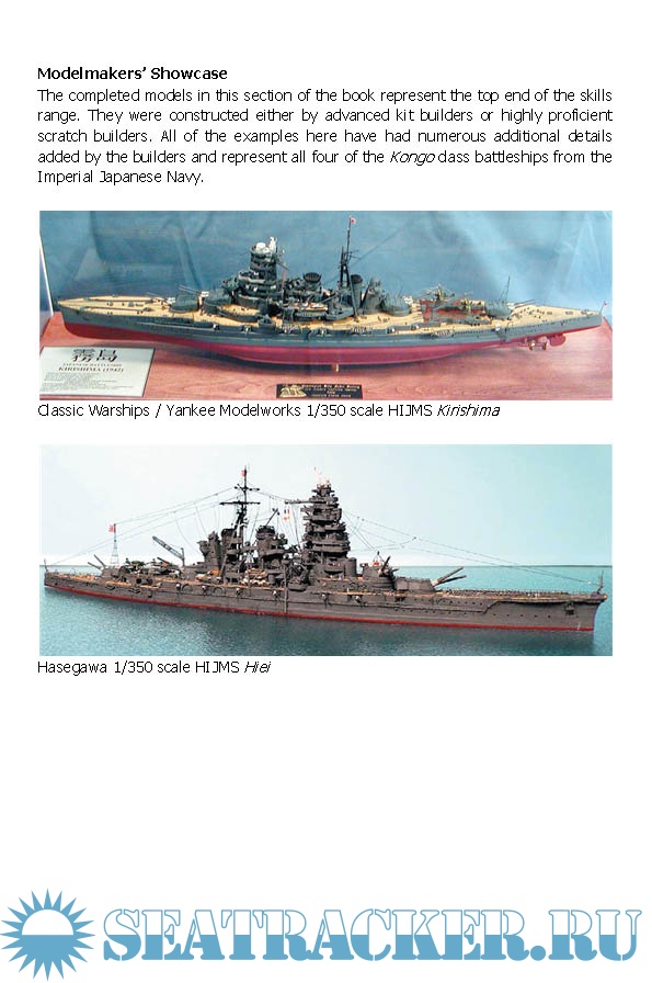 Year: 2008 Language: english Author: Steve Wiper Genre: Reference book Publisher: Seaforth Publishing Edition: Shipcraft 09 Format: EPUB Quality: eBook Pages count: 144 Description: The ‘ShipCraft’ series provides in-depth information about building and modifying model kits of famous warship types. Lavishly illustrated, each book takes the modeler through a brief history of the subject class, highlighting differences between sister-ships and changes in their appearance over their careers. This includes paint schemes and camouflage, featuring color profiles and highly-detailed line drawings and scale plans. The modeling section reviews the strengths and weaknesses of available kits, lists commercial accessory sets for super-detailing of the ships, and provides hints on modifying and improving the basic kit. This is followed by an extensive photographic gallery of selected high-quality models in a variety of scales, and the book concludes with a section on research references – books, monographs, large-scale plans and relevant websites. The subject of this volume is the Japanese Kongo class, four ships built during the First World War as battlecruisers, but extensively modified and reconstructed between the wars as fast battleships, so that each ship presented a different appearance. They were the chosen escorts for the elite IJN carrier forces, and saw much action during the Pacific War.