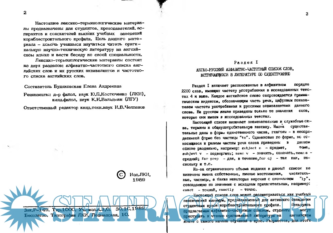 Настоящий список слов может рассматриваться как учебный лексический миницум, предназначенный для активного овладения студентами вузов кораблестроительного профиля. Пользуясь предлагаемым алфавитно-частотным списком, студенты могут приступать к чтению оригинальной литературы на английском языке с самого начала обучения в вузе. Разумеется» для этого