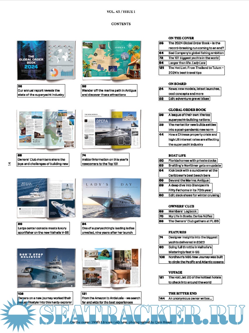 Year: 2024 Language: English Editor: Stewart Campbell Genre: Periodical (magazine) Edition: January 2024 Format: PDF Quality: eBook Pages count: 148 Description: Boat International is the number ONE magazine in the international superyacht market. Launched in 1983 it has been the voice of record charting the superyacht industry for over 25 years and is the globally acknowledged authority in its field. The world's only monthly superyacht magazine, Boat International delivers exclusive and unrivaled coverage of power and sail yachting from the world's best journalists and photographers.