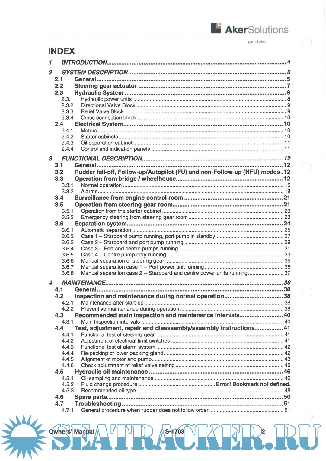 Description: This manual gives the information required to safely operate the system and recommendations for maintenance of the steering gear unit.