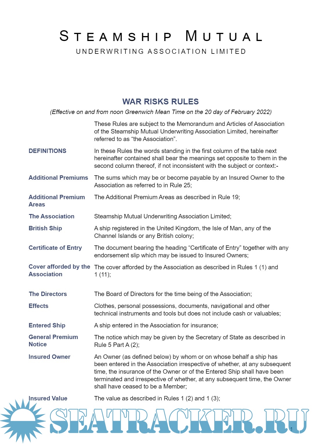 War Risk Rules - Steamship Mutual