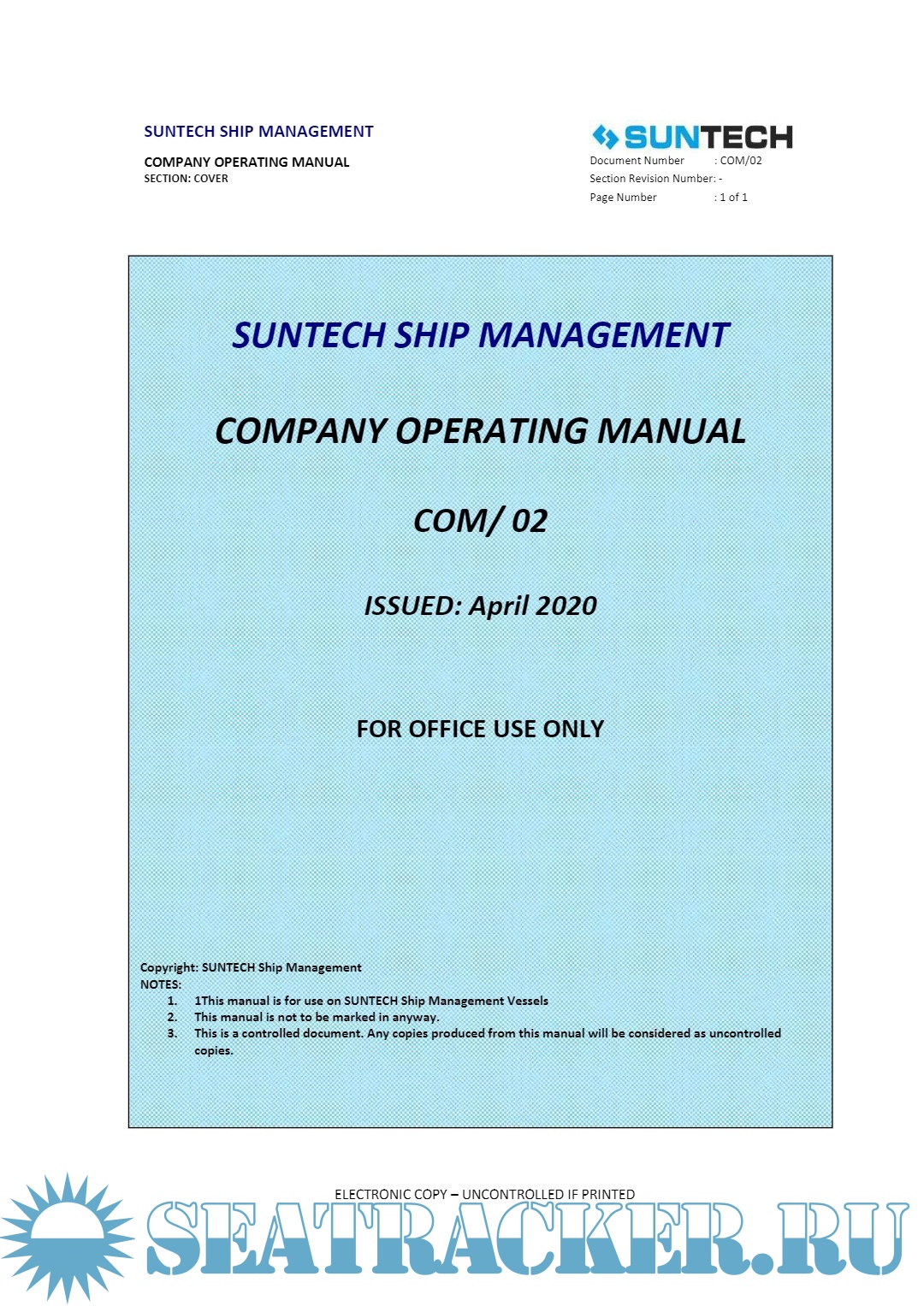 Ship Management Manual - Suntech Ship Management [2020, PDF]