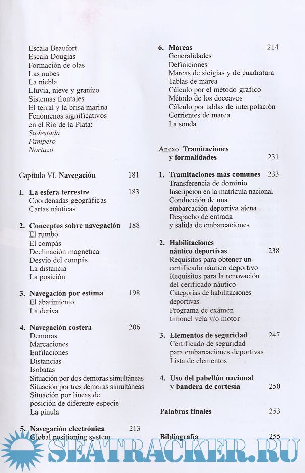 Year: 2006 Language: Spanish Author: Dario Fernandez Genre: Manual Publisher: Brapack ISBN: 987-05-1962-8 Format: PDF Quality: Scanned pages Pages count: 256 Description: Es un libro didáctico, donde no falta ninguna respuesta a las cuestiones del programa oficial. Así mismo Fernandez amplia algunos temas que considera indispensables para el navegante y su tripulación, propone al lector al final de cada capitulo preguntas para la autoevaluación, hace hincapié en la seguridad e incluso lo introduce en los tramites imprescindibles antes de zarpar.