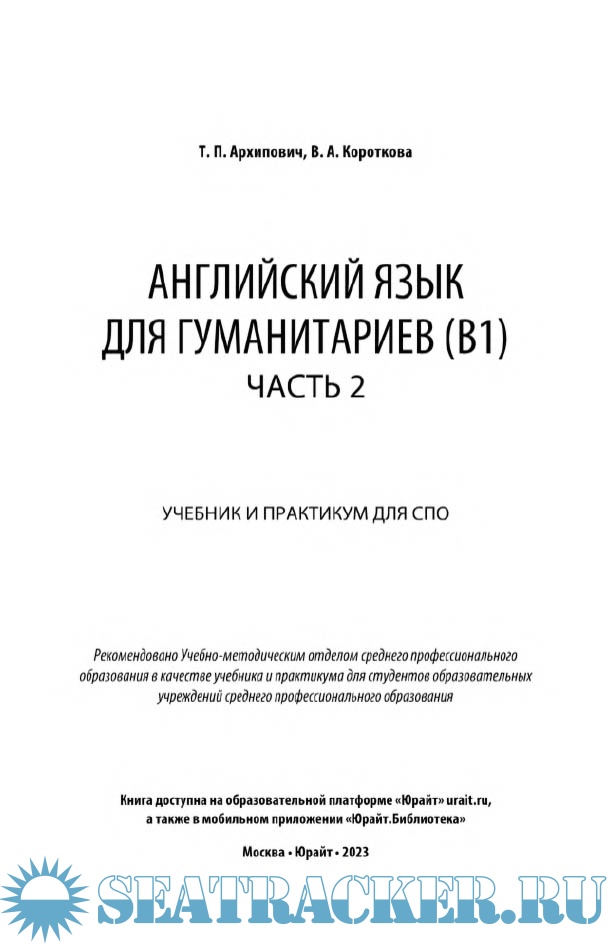 Описание: Данное издание предназначено для гуманитариев, изучающих английский язык в университетах. Степень владения языком для учащихся должна соответствовать уровню В1 по шкале CEFR. Оно также может быть использовано лицами, которые продолжают изучать английский язык. Его основной целью является развитие способности к общению на английском языке через формирование и закрепление лексико-грамматических навыков в коммуникативных заданиях, активизация речевой деятельности обучаемых в системе «высказывание — диалог — дискуссия» для решения задач межличностного и межкультурного взаимодействия.