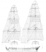 Люгер "Le Coureur" 1776 (чертежи) - Jean Boudriot, Hubert Berti [1985, JPEG]