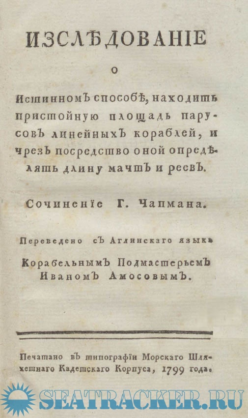 Описание: Изследование о истинном способе, находить пристойную площадь парусов линейных кораблей, и чрез посредство оной определять длину мачт и реев.