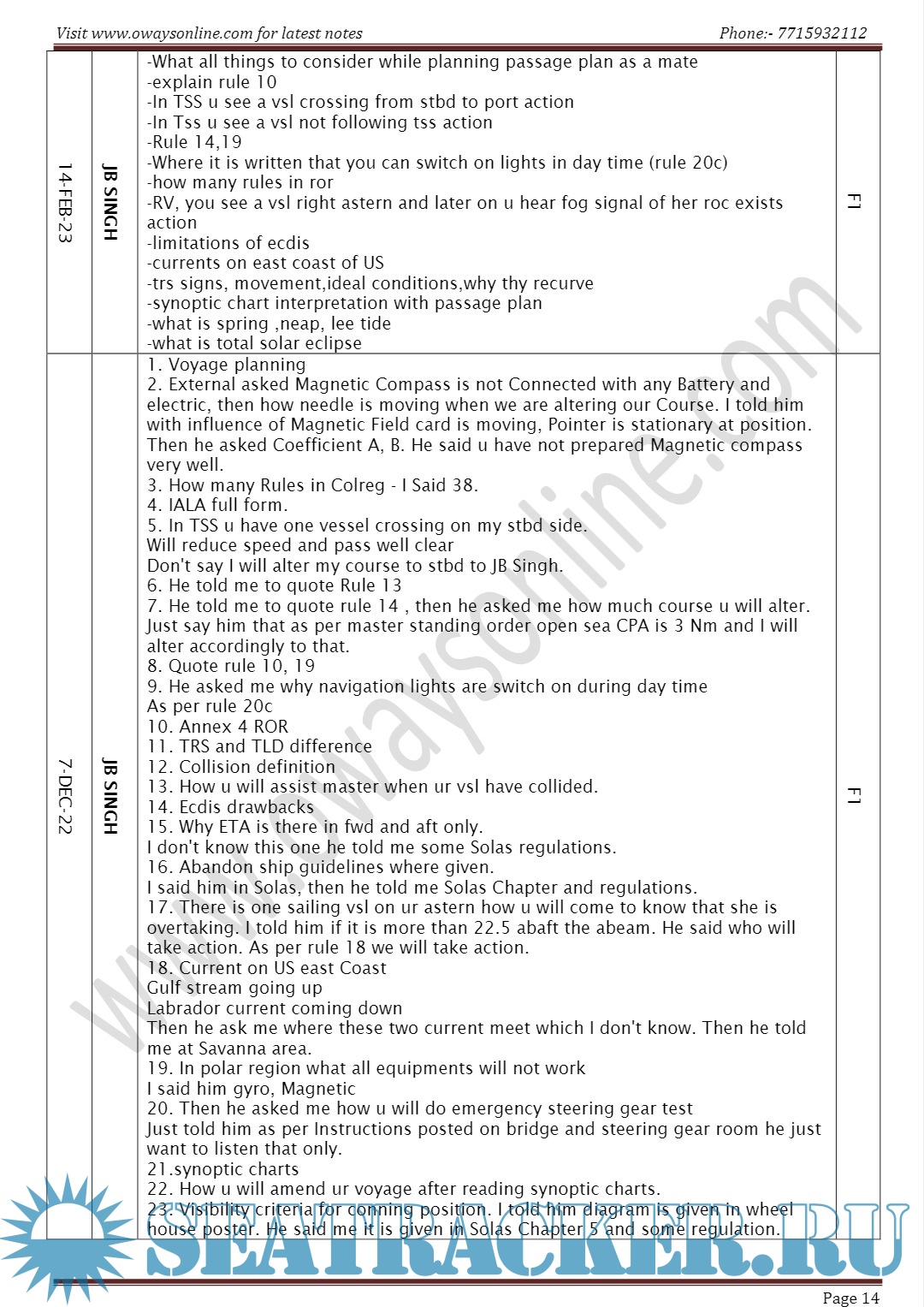 Orals Question Bank (February 2024) for Chief Mate F.G. Mercantile Marine Department (MMD), India…