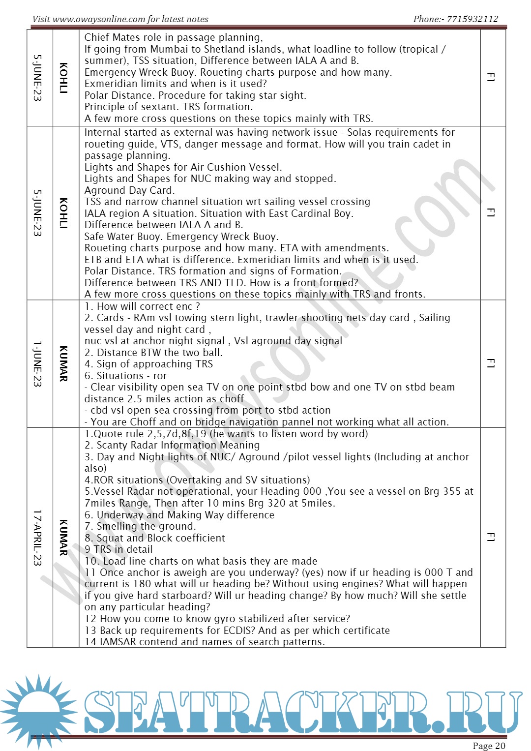 Orals Question Bank (June 2023) for Chief Mate F.G. Mercantile Marine Department (MMD), India…