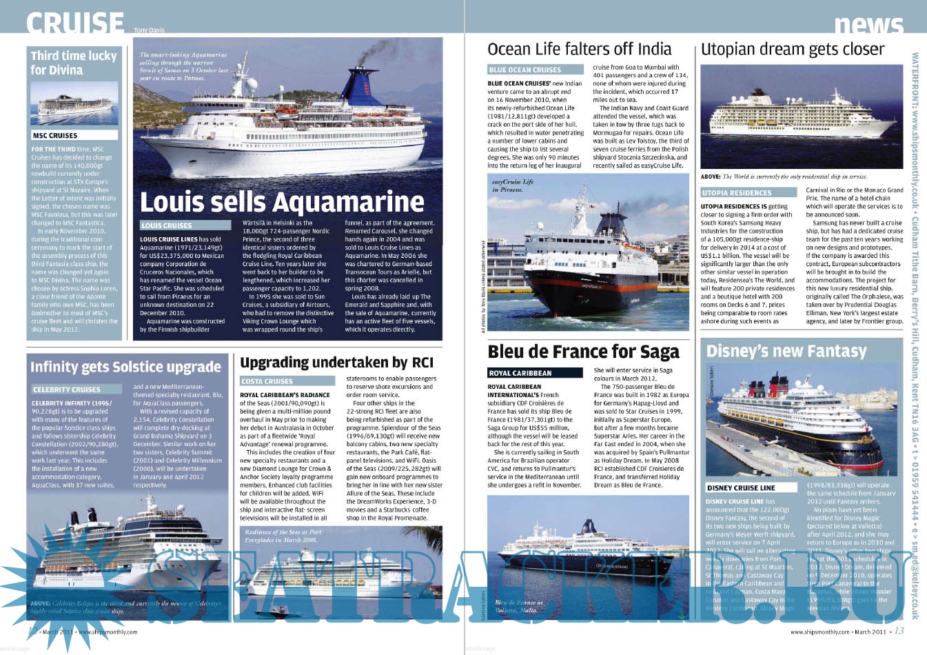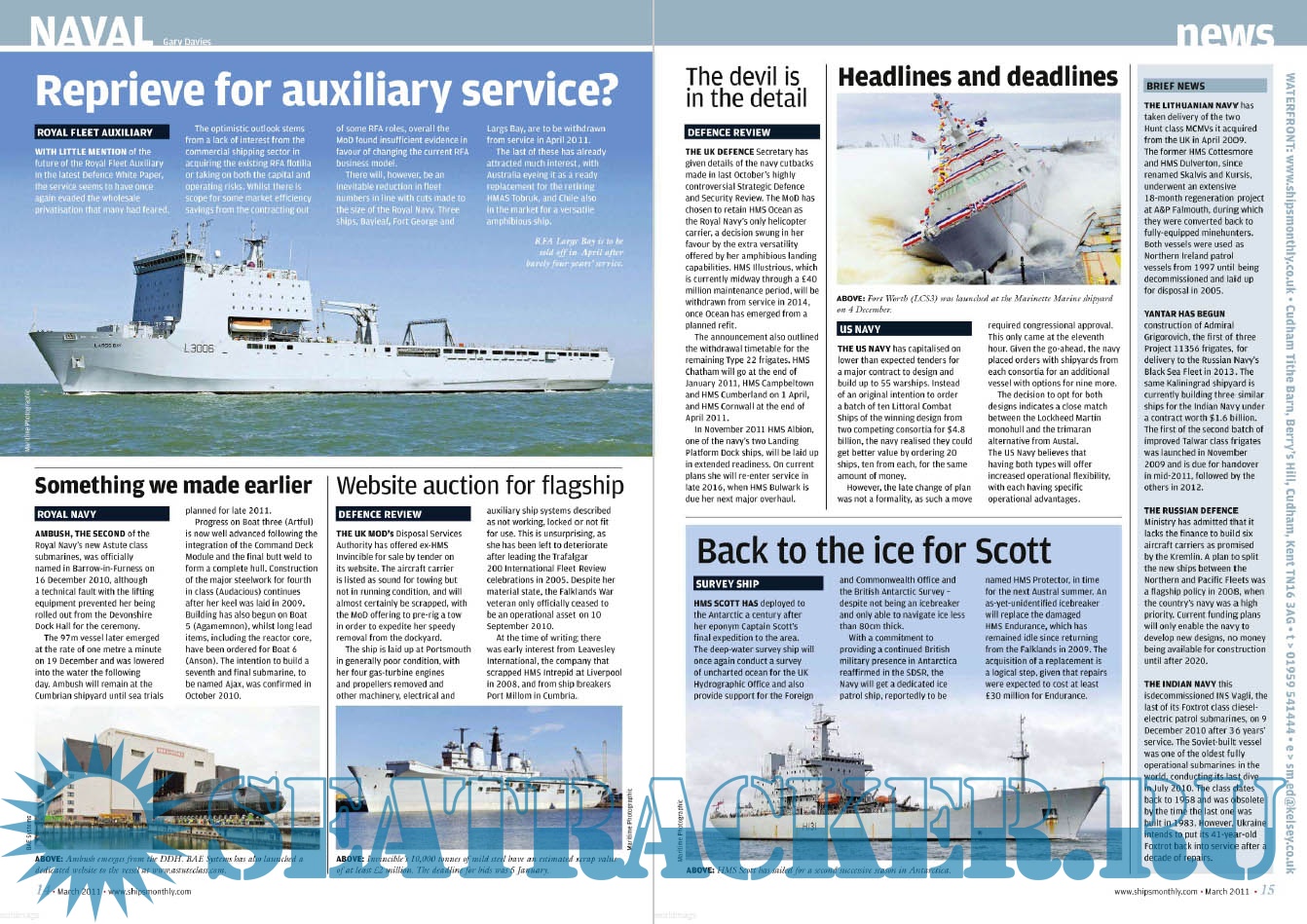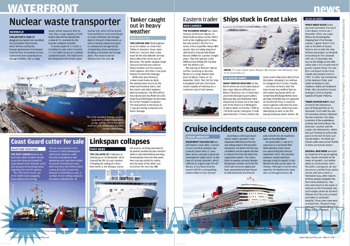 Description: Ships Monthly is the world's leading international shipping magazine. Ships Monthly provides news and features for ship enthusiasts and maritime professionals, including reports on the ferry, cruise, new building and cargo ship scene as well as navies across the world.The latest issue of Ships Monthly is out now, and is packed with all the usual news and features, including outstanding articles and features.