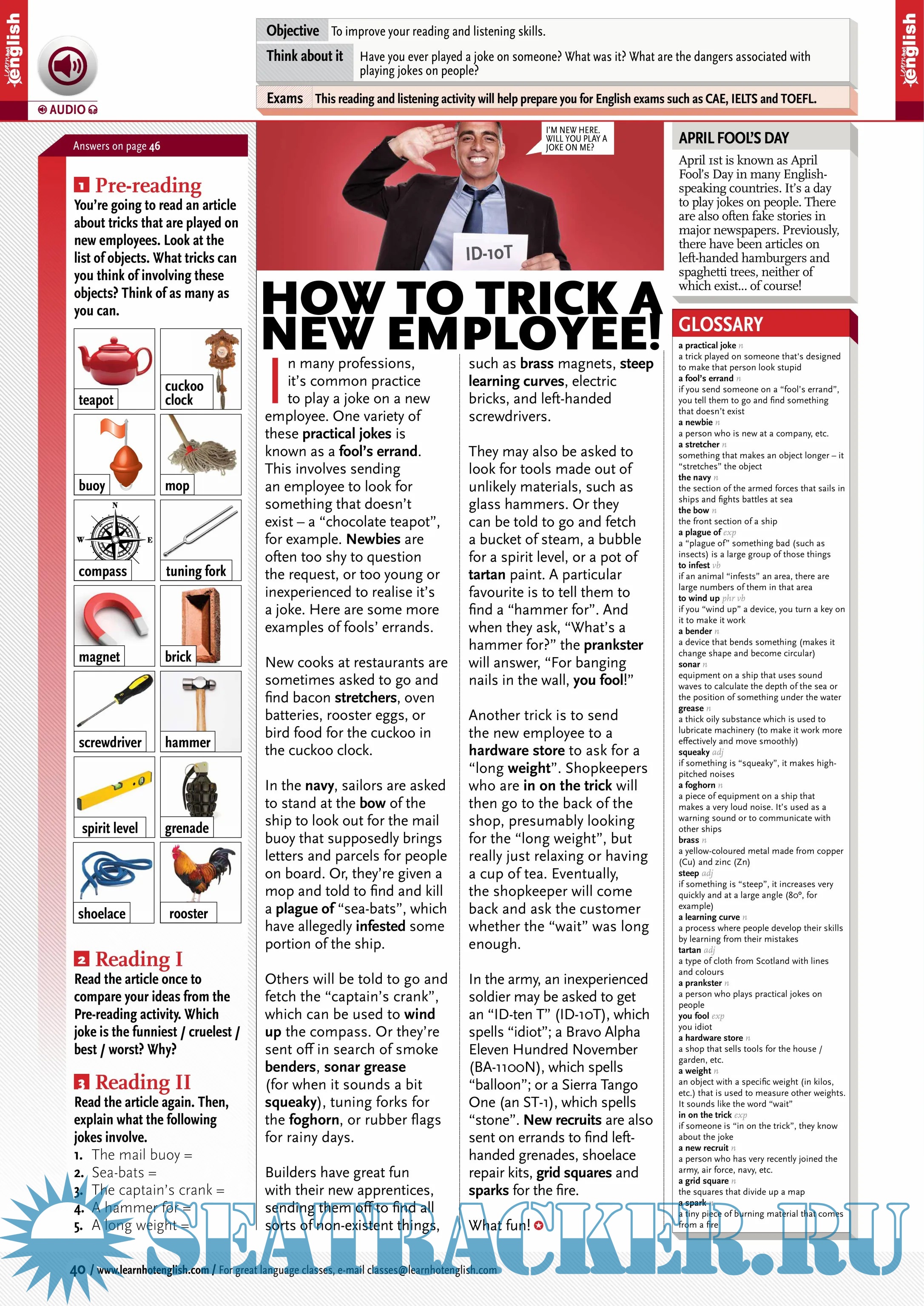 Description: A monthly magazine for learning English. Idioms, phrasal verbs, useful expressions, grammar, vocabulary.