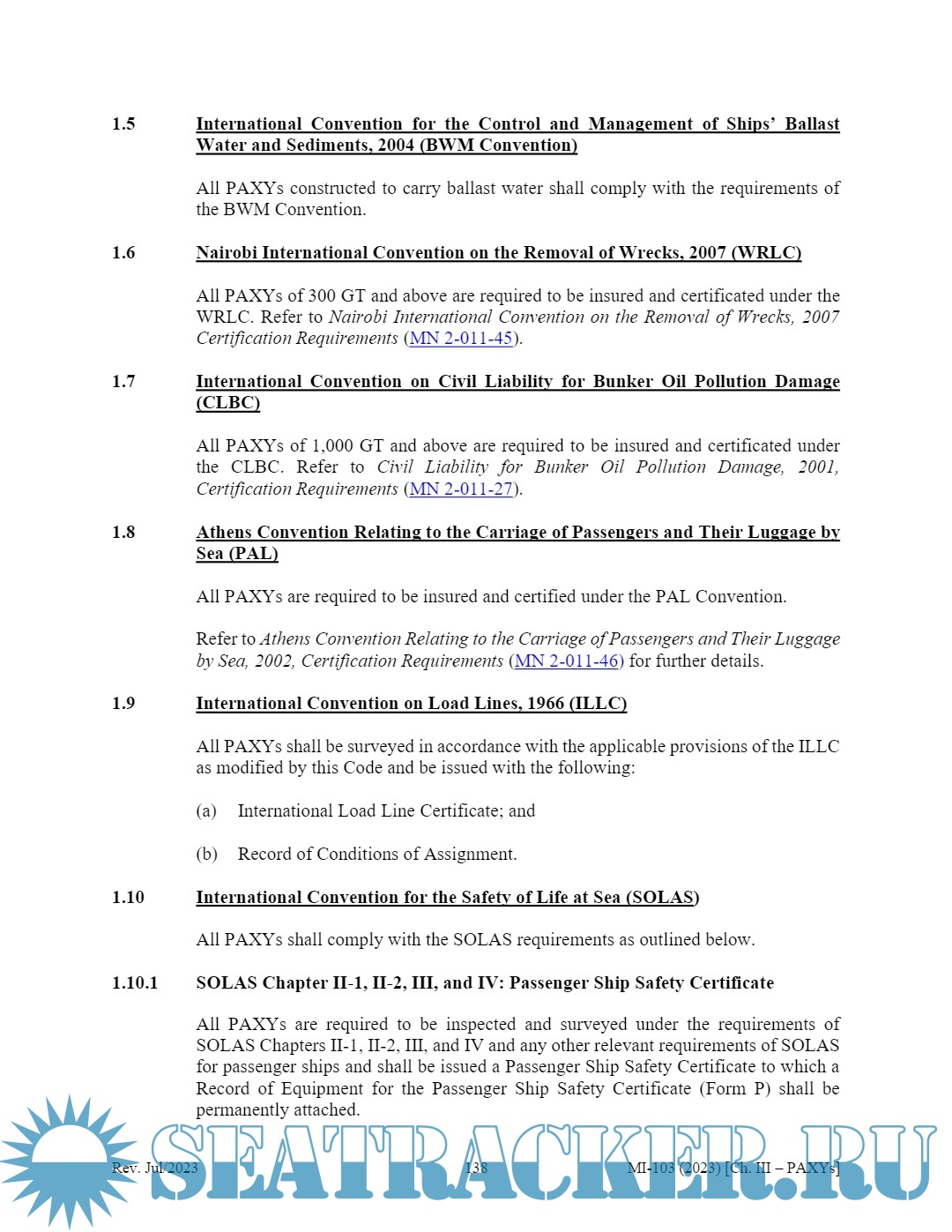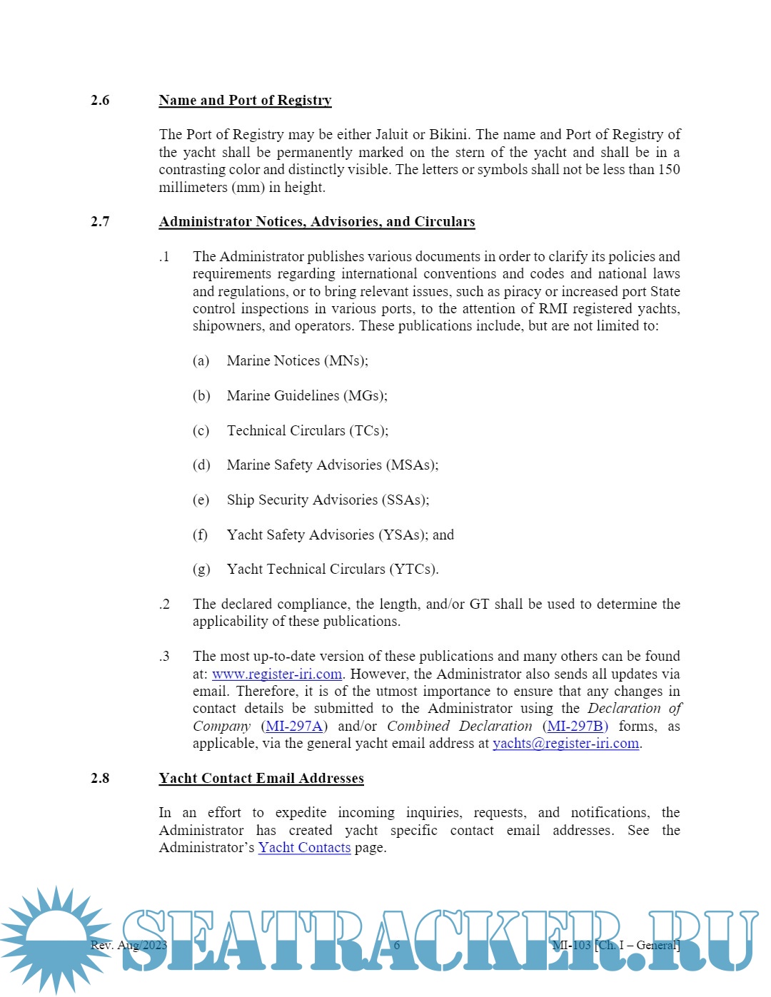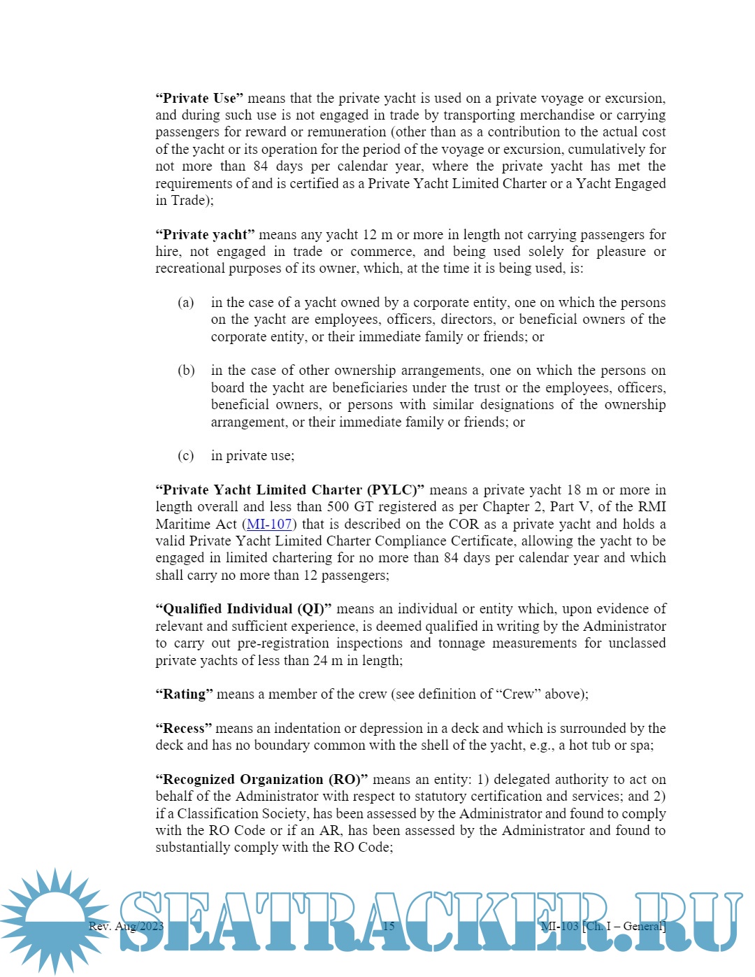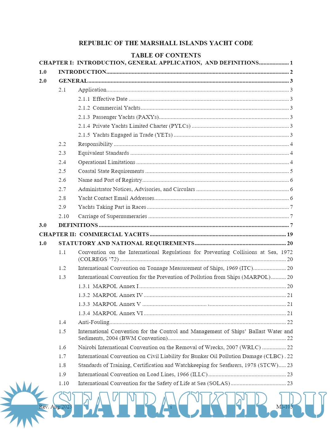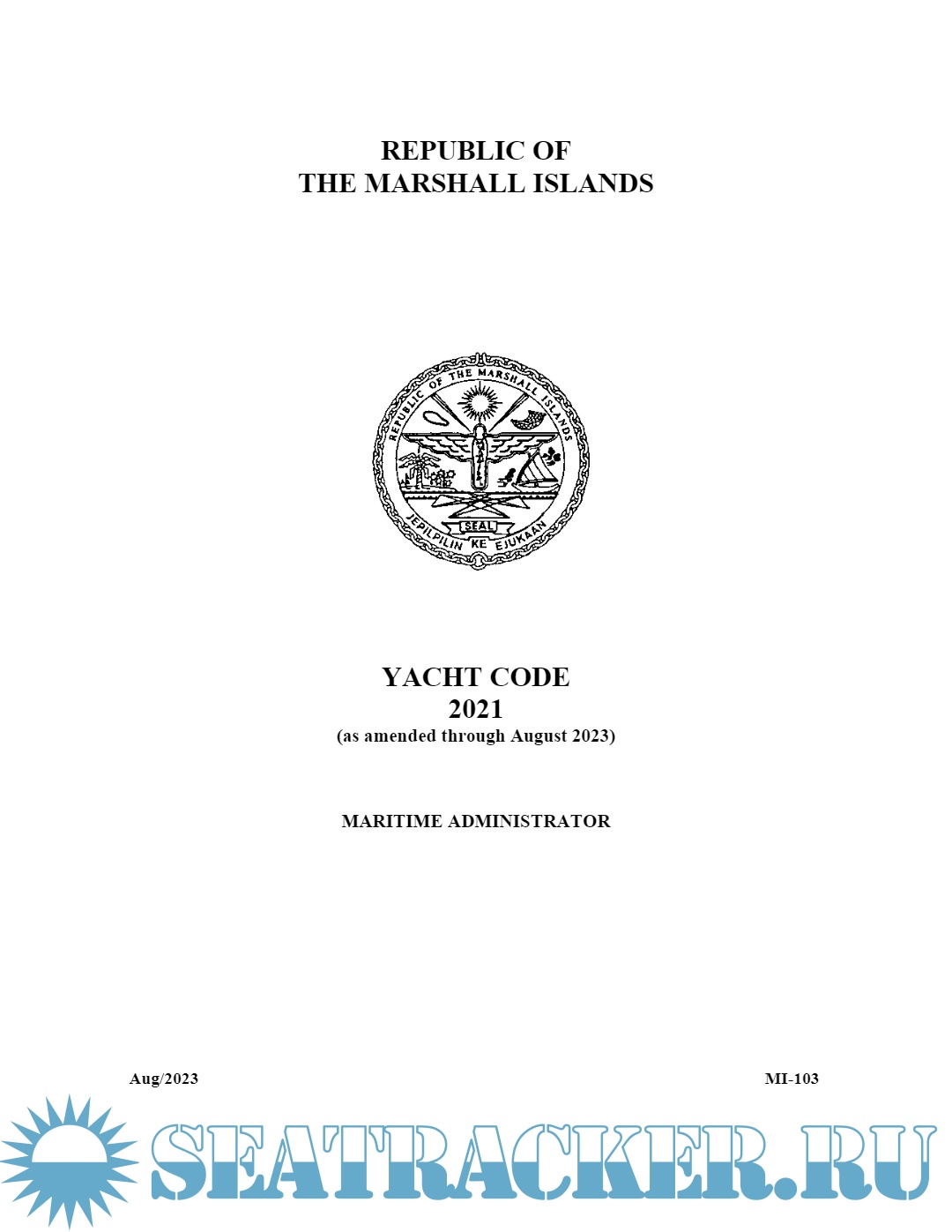 Description: The Republic of the Marshall Islands Yacht Code (MI-103) is designed to be read and used as an