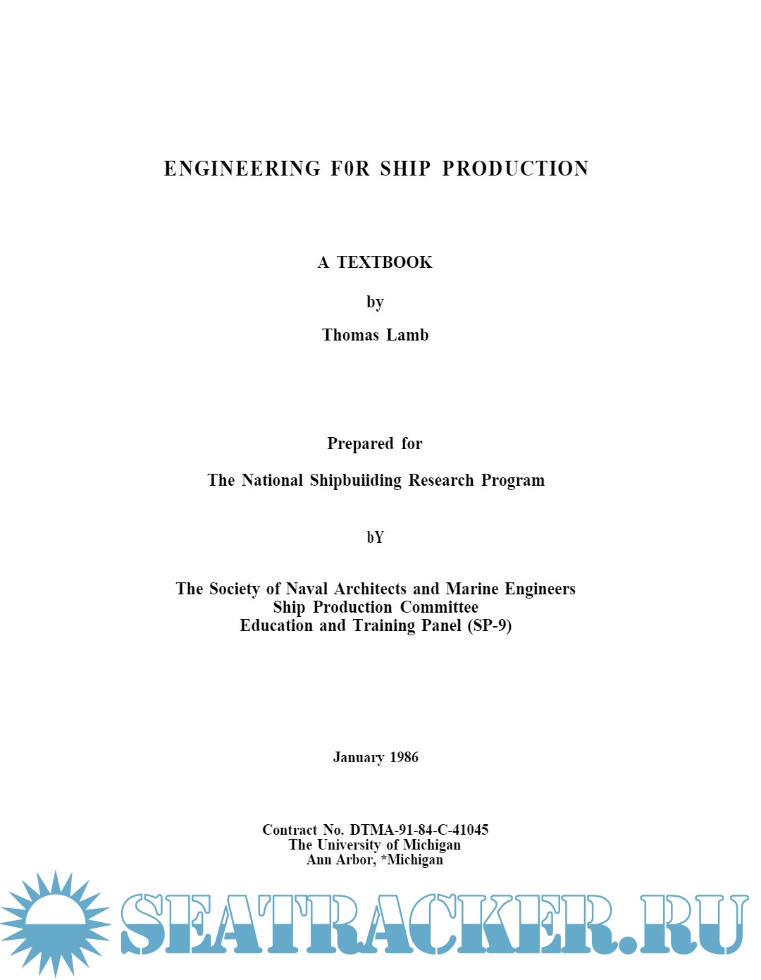 Year: 1986 Language: English Author: Thomas Lamb Genre: Textbook Publisher: Thomas Lamb Format: PDF Quality: eBook Pages count: 488 Description: This book has been written to assist those engineers, designers, drafters, and engineering planners who want to regain their leadership position, to understand and apply some of the necessary techniques for successful engineering for ship production. The book is organized into three parts, namely: Part I: Design for Ship Production Part 2: Engineering for Ship Production Part 3: Engineering Organization for Ship Production