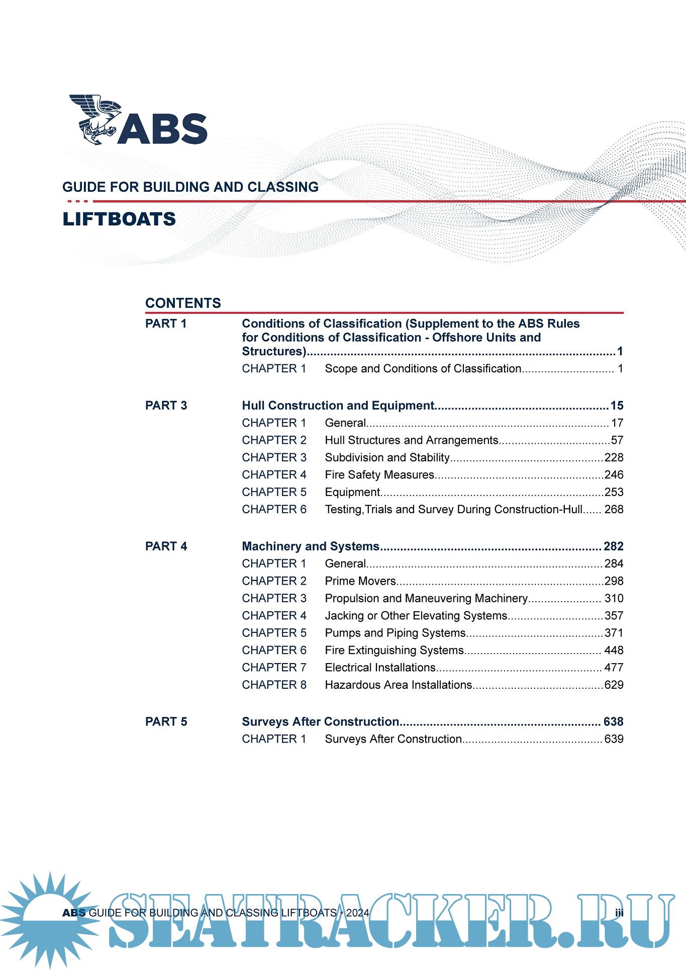 Year: 2024 Language: English Author: ABS Genre: Guide Edition: January, 2024 Format: PDF Quality: eBook Pages count: 675 Description: This Guide was developed for the Classification of Liftboats and specifies the requirements for design,construction and survey after construction of the Liftboat (including hull structure, equipment andmachinery systems) for use by designers, builders, owners and operators in the offshore industry.