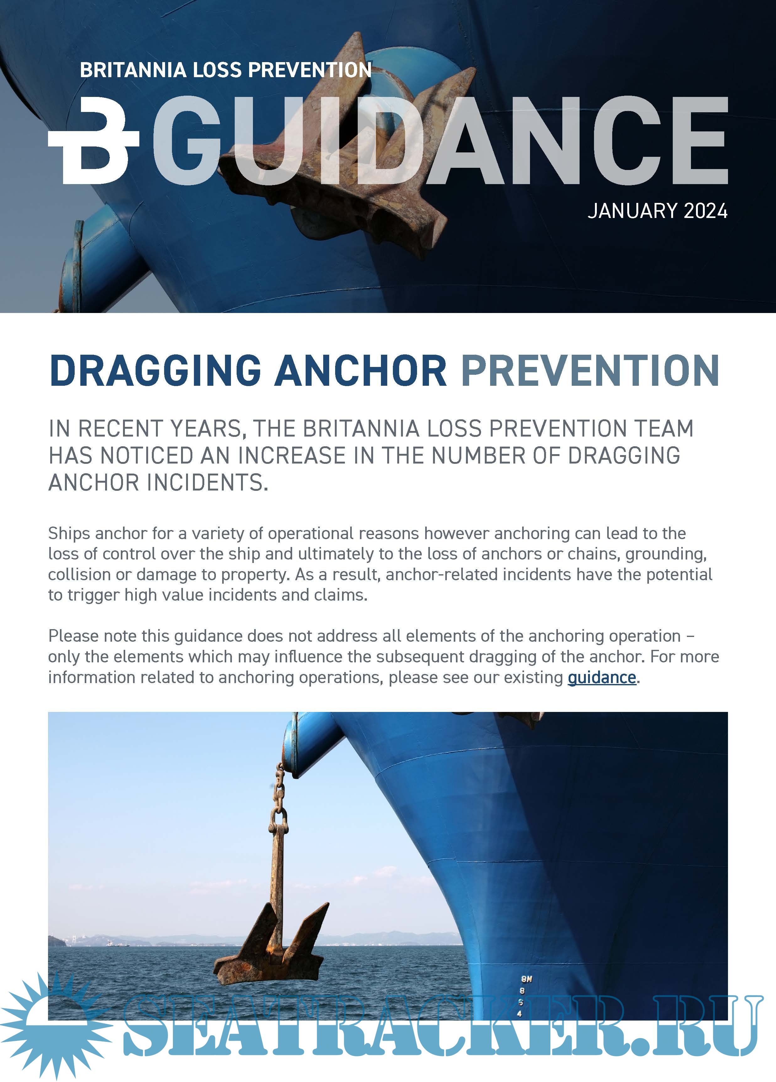 Description: In recent years, the Britannia Loss Prevention team has noticed an increase in the number of dragging anchor incidents. Ships anchor for a variety of operational reasons however anchoring can lead to the loss of control over the ship and ultimately to the loss of anchors or chains, grounding, collision or damage to property. As a result, anchor-related incidents have the potential to trigger high value incidents and claims.