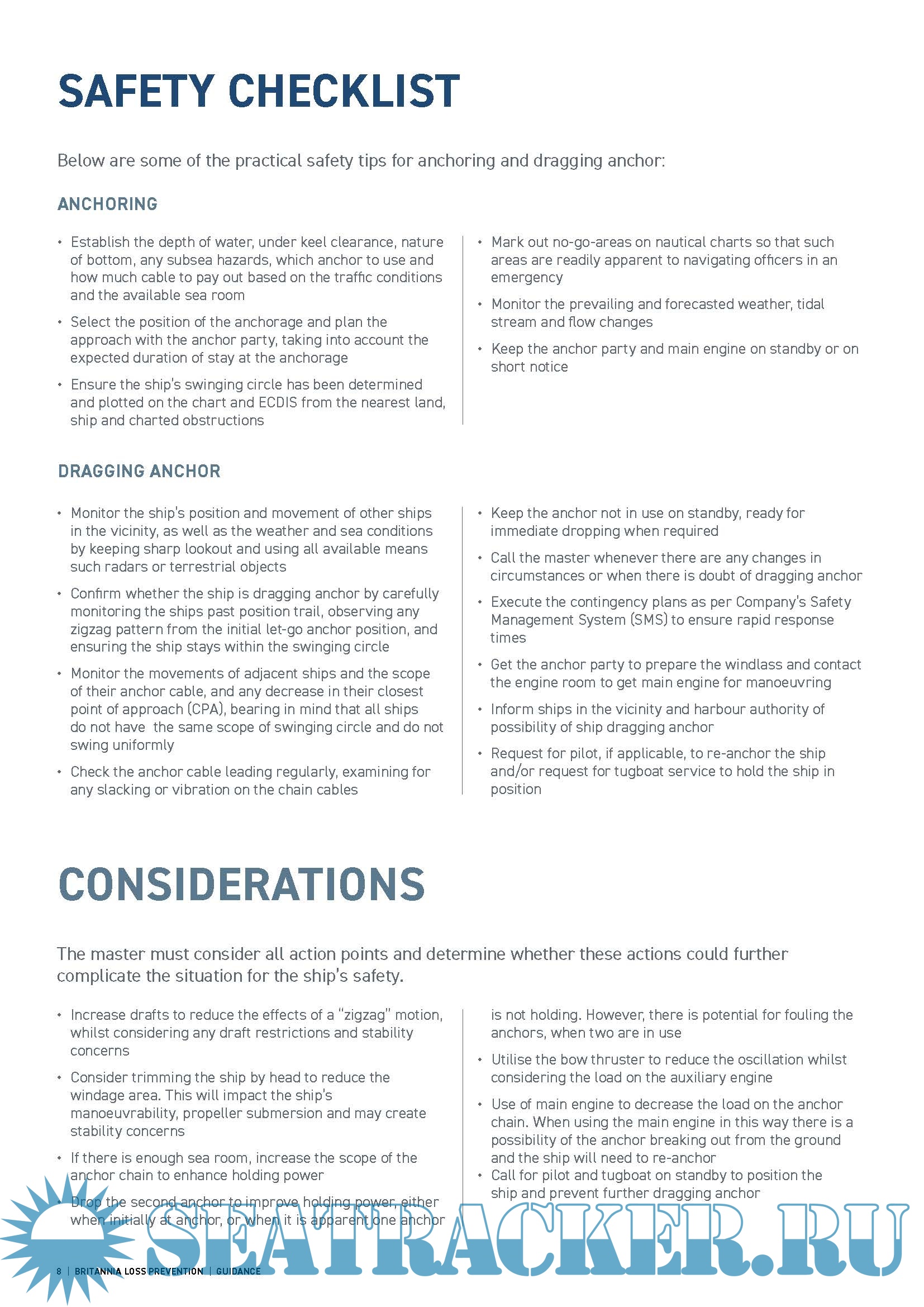 Please note this guidance does not address all elements of the anchoring operation – only the elements which may influence the subsequent dragging of the anchor.