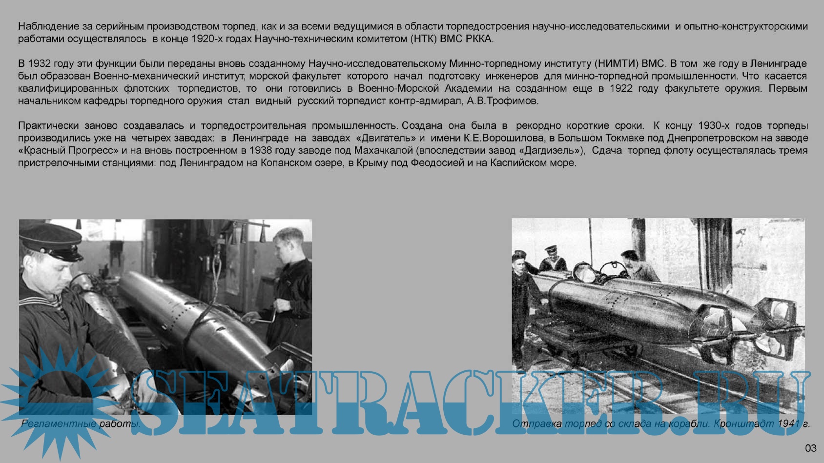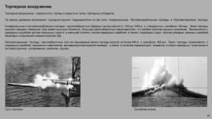 Информационные слайды, повествующие о становлении минно-торпедного вооружения.