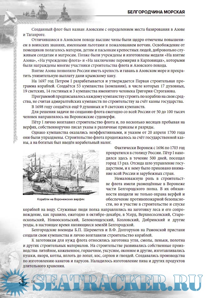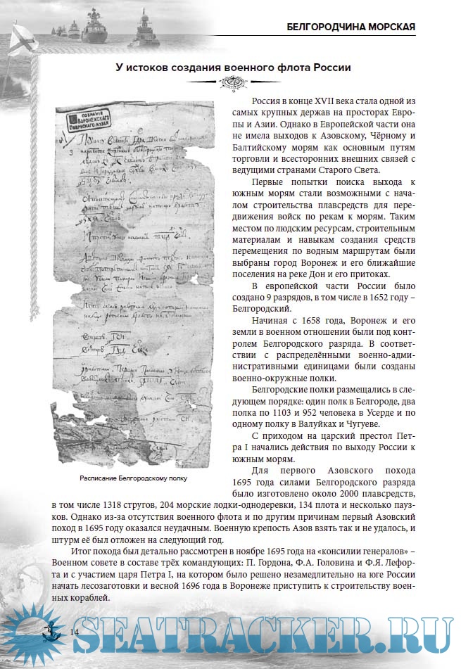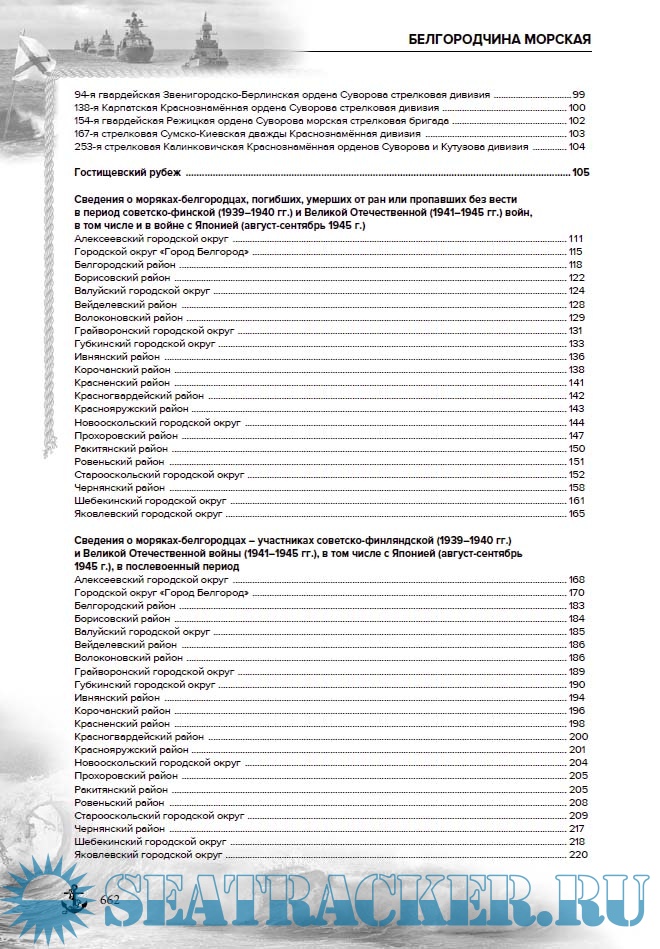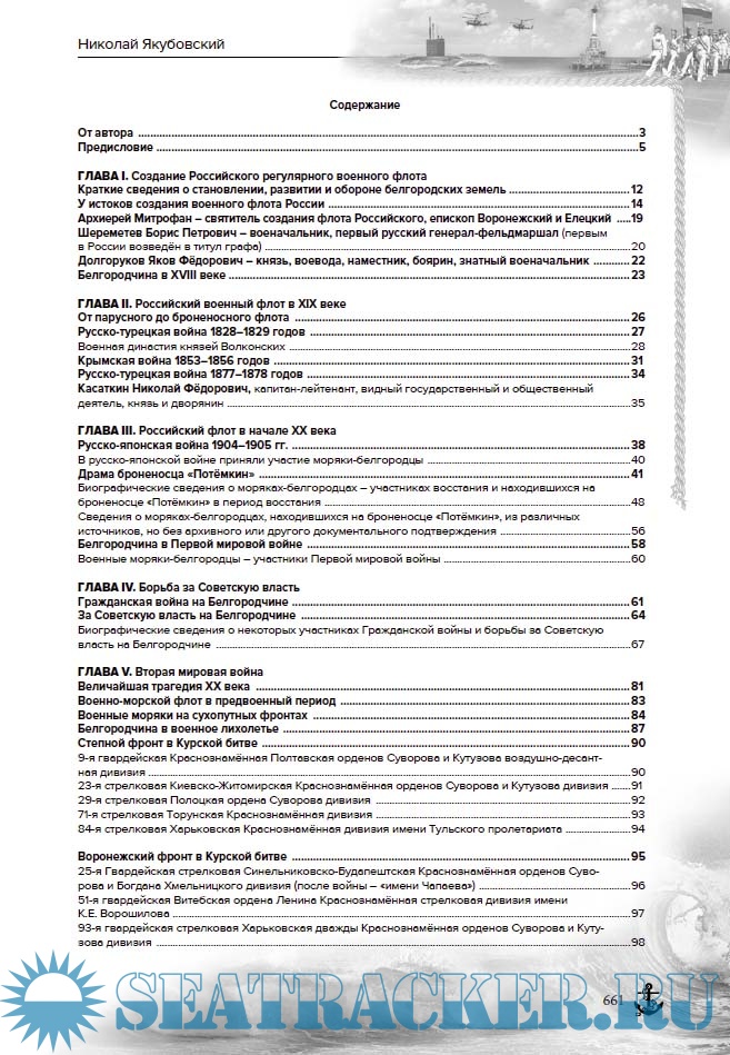 Автором, на основе документов и материалов государственных, центральных военных и областных архивов, сведений из военных комиссариатов, общественных советов ветеранов войны и труда, а также граждан Белгородской, Воронежской и Курской областей, составлены биографии всех категорий моряков-белгородцев Военно-морского флота СССР и России.