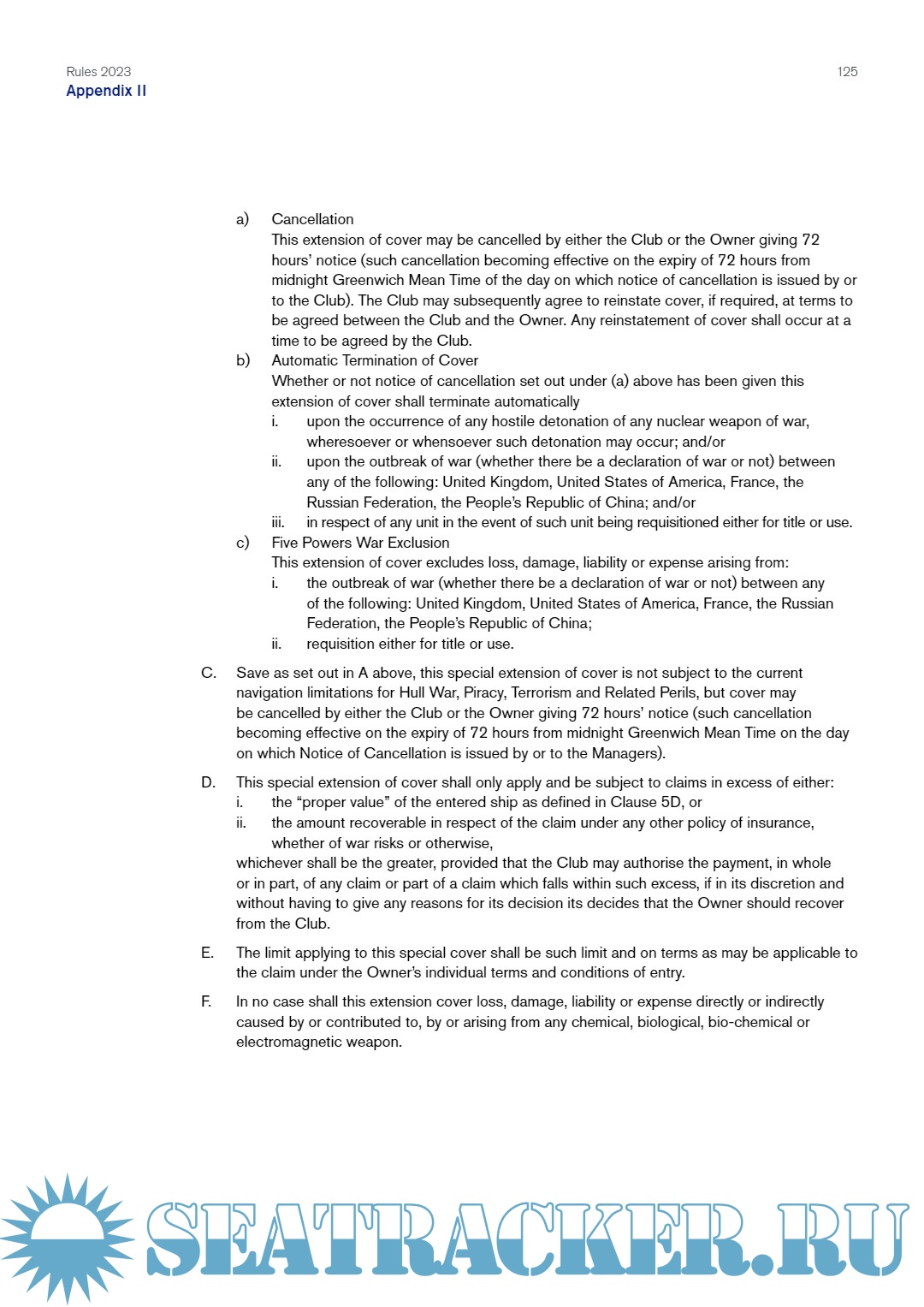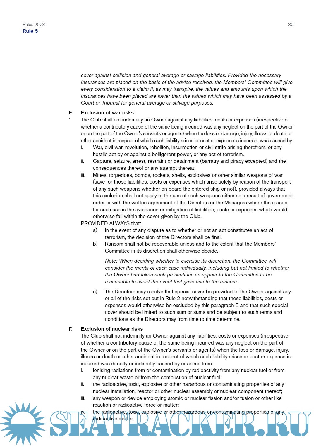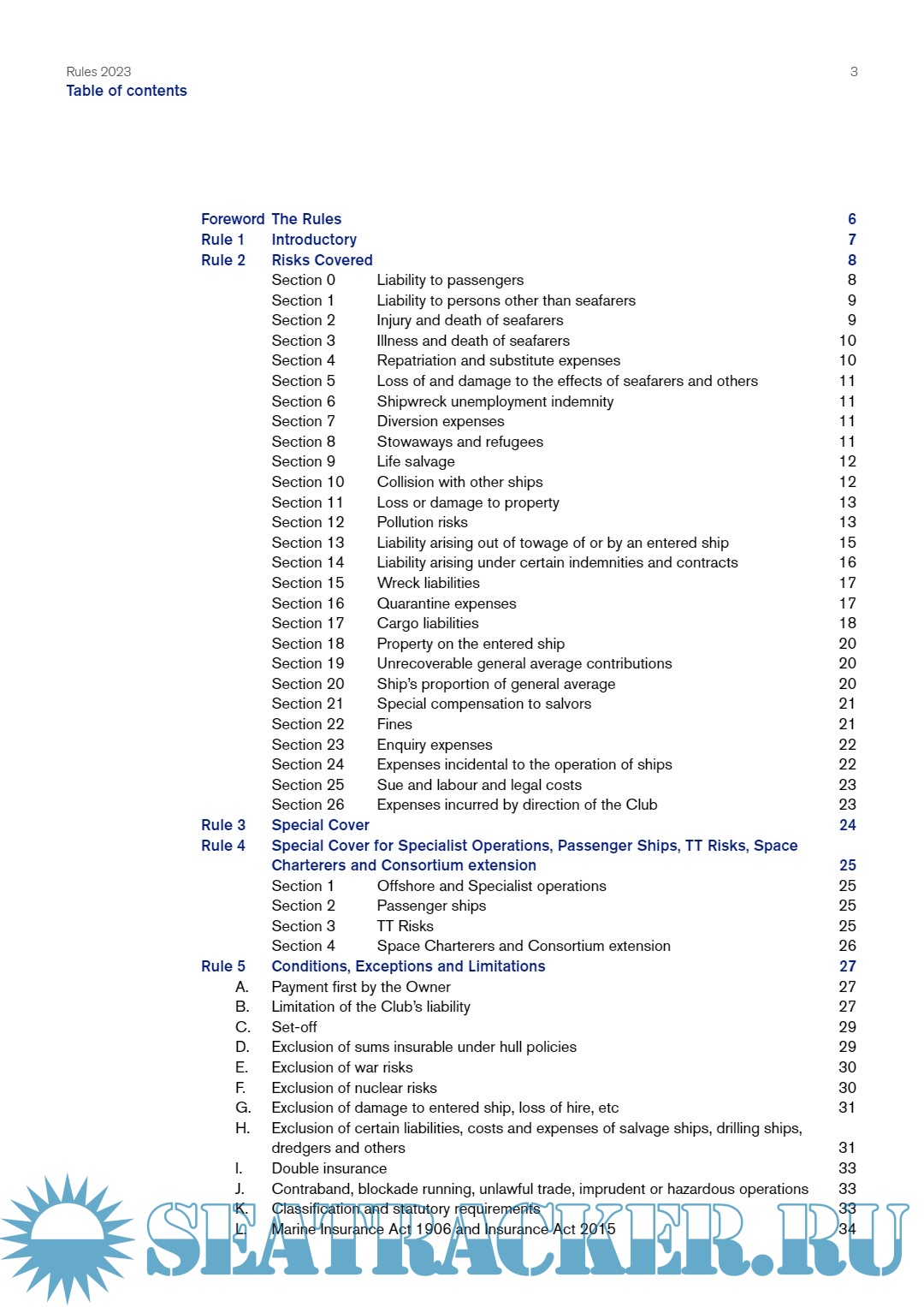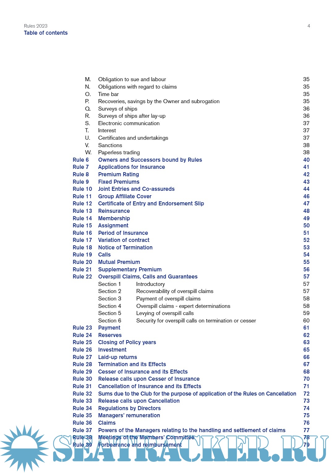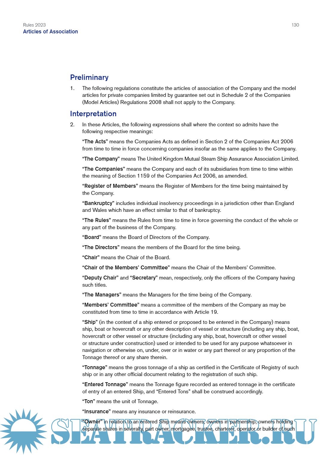 Description: The UK P&I Club is a mutual protection and indemnity Club, which operates through The United Kingdom Mutual Steam Ship Assurance Association Limited and its subsidiary companies The United Kingdom Mutual Steam Ship Assurance Association (Bermuda) Limited and UK P&I Club N.V. These Rules were adopted in accordance with the powers conferred by the articles of The United Kingdom Mutual Steam Ship Assurance Association Limited and of UK P&I Club N.V. For the avoidance of doubt, for the purpose of Rule 14 no contract of insurance or reinsurance with The United Kingdom Mutual Steam Ship Assurance Association Limited or UK P&I Club N.V. shall entitle any person to be or become a member of The United Kingdom Mutual Steam Ship Assurance Association (Bermuda) Limited or UK P&I Club N.V. The notes to the Rules are for guidance only and do not form part of the Rules.
