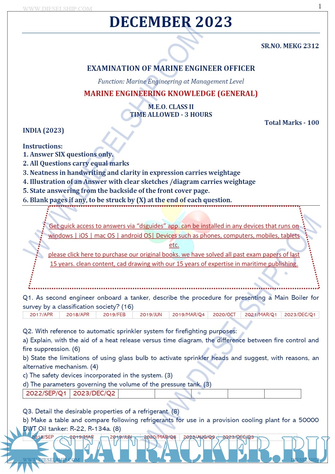 Year: 2023 Language: English Author: Dieselship Format: PDF Quality: eBook Pages count: 591 Description: M.E.O. Class II Question Paper set for Mercantile Marine Department (MMD), D.G. Shipping India Exams.