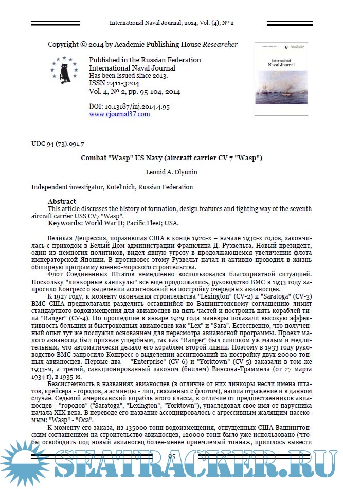 International Naval Journal за 2014 год (номера 3 и 4)