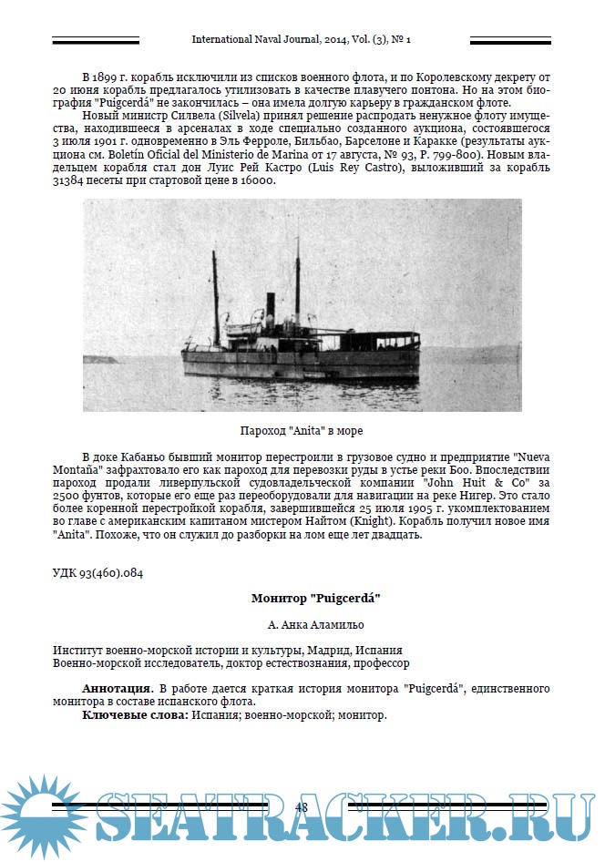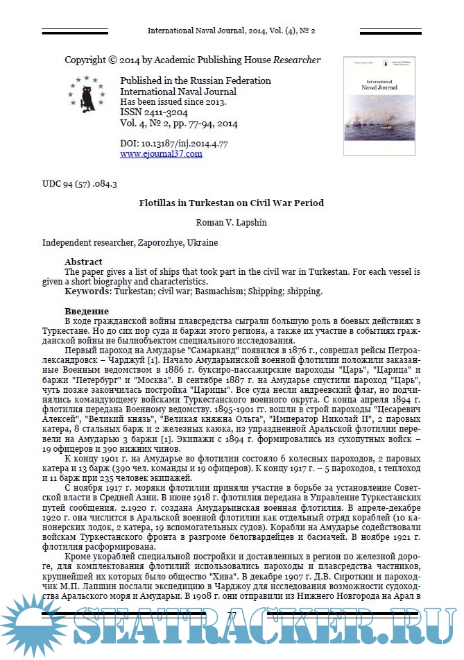 Год выпуска: 2014 Язык: Русский, Английский Автор: группа авторов Жанр: Периодическое издание (журнал) Формат: PDF Качество: Изначально компьютерное (eBook) Количество страниц: 110 Описание: Миссия журнала заключается в создании международной дискуссионной платформы в области военно-морской истории. В отличие от большинства авторитетных военно-морских исторических журналов, мы позиционируем себя в первую очередь как один из немногих научных журналов в этой области, что предполагает необходимые требования к структурированию работы, ее метаданным, библиографическому описанию, а также процедуре рецензирования.Журнал публикует материалы, статьи и краткие сообщения о результатах исследований в области военно-морской истории, на английском и русском языках. Выходные данные статьи на английском языке.