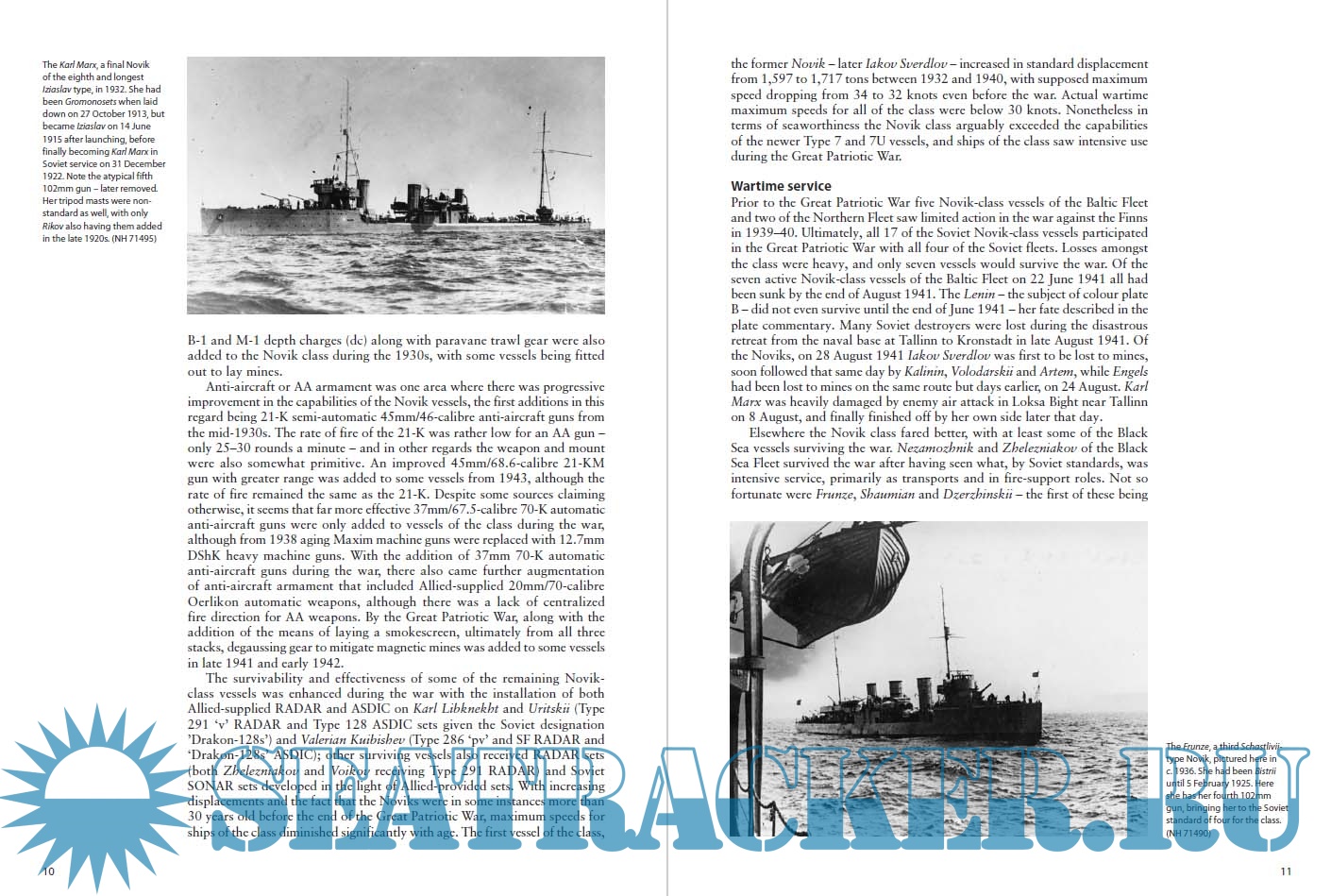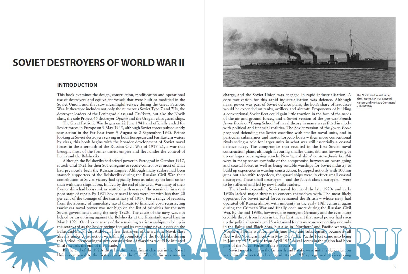 Year: 2018 Language: English Author: Alexander Hill Genre: History Publisher: Osprey Publishing Edition: New Vanguard 256 Format: PDF Quality: eBook Pages count: 49 Description: The Soviet Navy that faced the German onslaught in 1941 boasted a mixture of modern warships, often built with foreign technical assistance, and antiquated warships from the Tsarist era that were modernized for the conflict. Some Soviet naval vessels saw limited involvement in the war against Finland in 1939-1940, but the main action occurred after the German invasion, when these destroyers escorted convoys, fought battles against other destroyers and the deadly threat posed by attacking aircraft, and provided fire support for Soviet troops. From the Gnevny class of the prewar period to the specialist destroyer leaders of the Leningrad class and the unique Tashkent , Soviet Destroyers of World War II is a detailed guide to the often forgotten destroyers of the Soviet Navy. Fully illustrated with archival photos and specially commissioned artwork, Soviet Destroyers of World War II will appeal to naval historians, or anyone interested in this little-known part of the war.