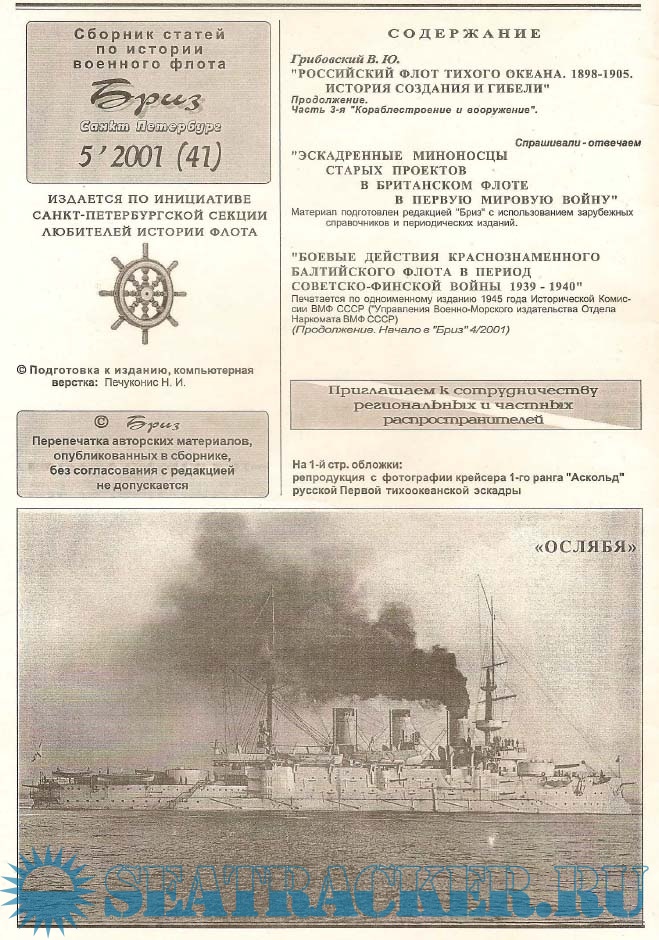 Год выпуска: 2001 Язык: русский Автор: группа авторов Жанр: Периодическое издание (журнал) Издание: 2001-05 Формат: PDF Качество: Отсканированные страницы Количество страниц: 44 Описание: Сборник статей по истории флота