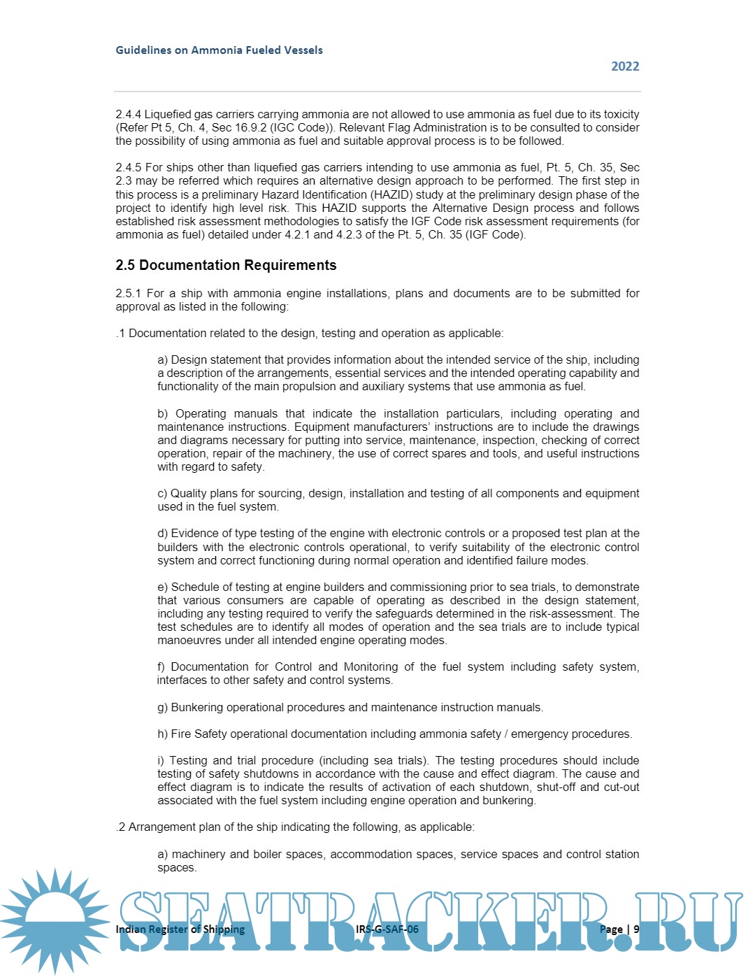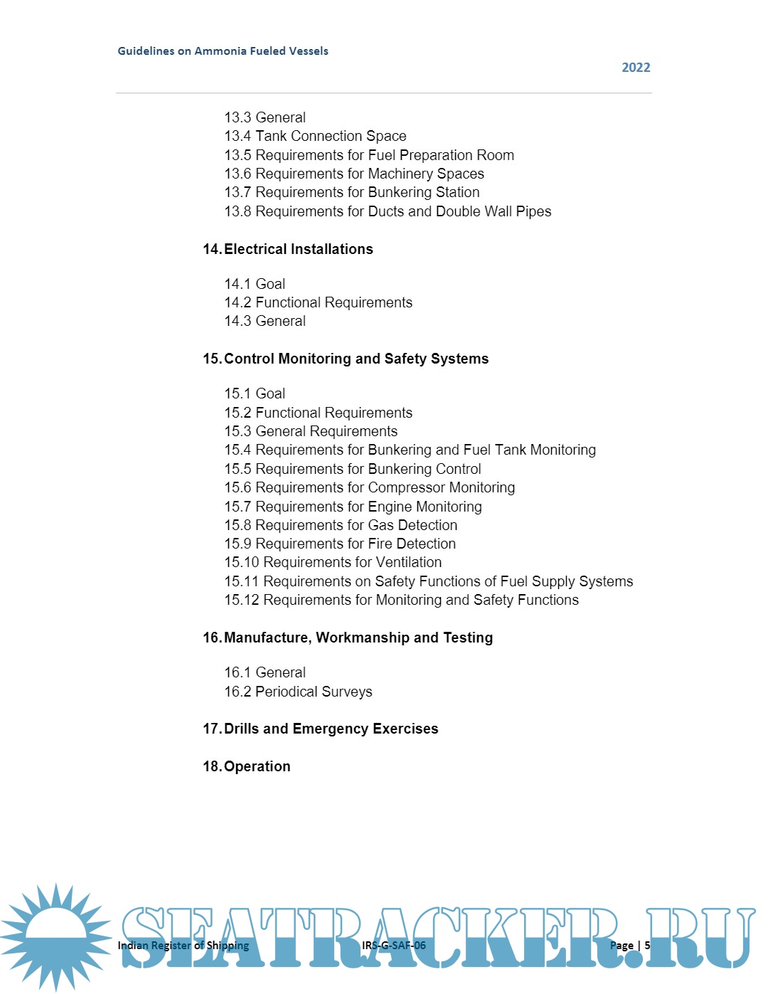 Year: 2022 Language: English Author: Indian Register of Shipping Publisher: Indian Register of Shipping Format: PDF Quality: eBook Pages count: 41 Description: These guidelines are intended to provide requirements for ships using ammonia as fuel in the liquid state in storage tanks. The basic philosophy of these guidelines is to provide provisions for the arrangement, installation, control and monitoring of machinery, equipment and systems in ships using ammonia as fuel to minimize the risk to the ship, its crew and the environment, having regard to the nature of the fuels involved. Throughout the development of these guidelines it was recognized that it must be based upon sound naval architectural and engineering principles and the best understanding available of current operational experience, field data and research and development. These guidelines address all areas that need special consideration for the usage of the ammonia as fuel. These guidelines consider the goal based approach (MSC.1/Circ.1394). Therefore, goals and functional requirements were specified for each section forming the basis for the design, construction and operation. The current version of these guidelines includes requirements to meet the functional requirements for ammonia as fuel. These guidelines have been developed in order to assist the ship owners, ship designers and shipyards in designing, building and operating ammonia fueled vessels.