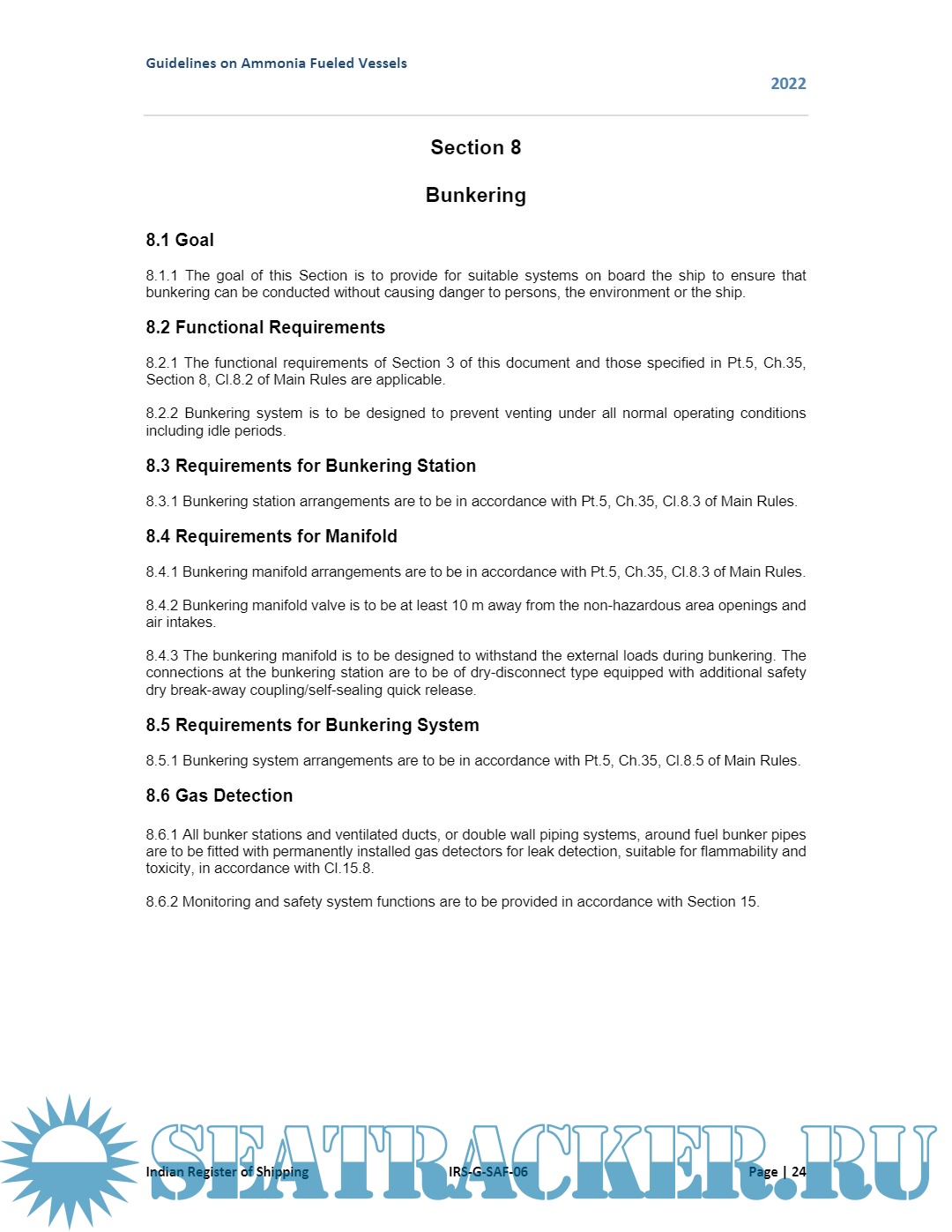 Description: These guidelines are intended to provide requirements for ships using ammonia as fuel in the liquid