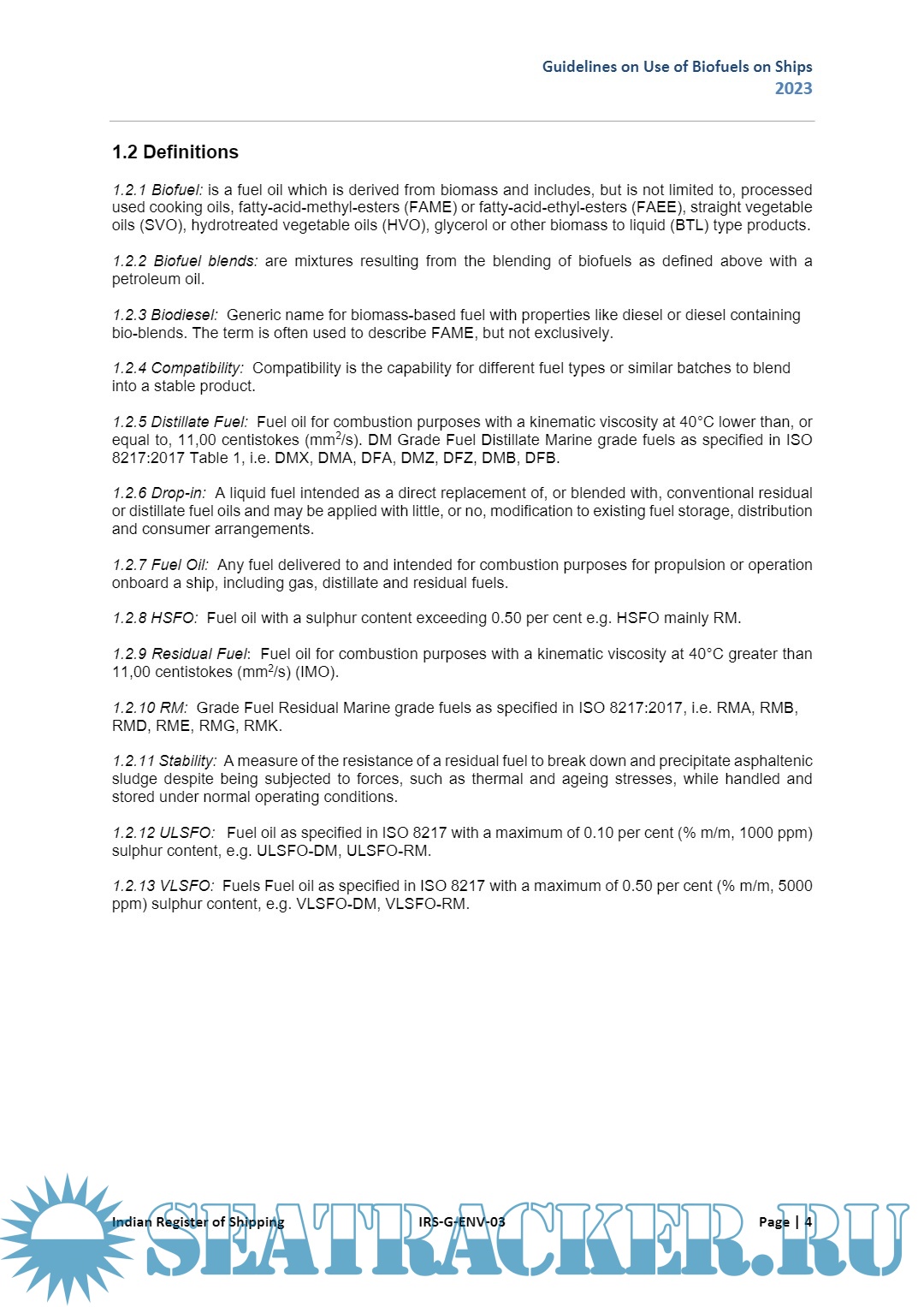 Year: 2023 Language: English Author: Indian Register of Shipping Publisher: Indian Register of Shipping Format: PDF Quality: eBook Pages count: 18 Description: These Guidelines are applicable to ‘drop-in’ biofuels but not to the bio-derived gaseous fuels such as biomethane or liquid methyl/ ethyl alcohol fuels which are covered by the IGF Code (IMO Resolution MSC.391(95), as may be amended).