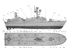 Описание: 19 листов цветных выкроек и инструкций для изготовления бумажной модели ракетного катера проекта 205 ОСА в масштабе 1:100