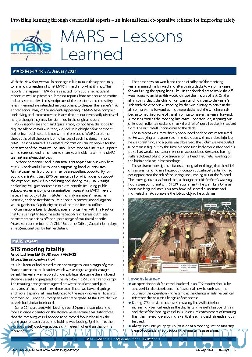 Mariners’ Alerting and Reporting Scheme (MARS) Report (January) - The Nautical Institute [2025, PDF]