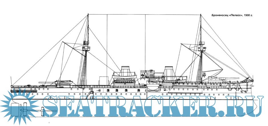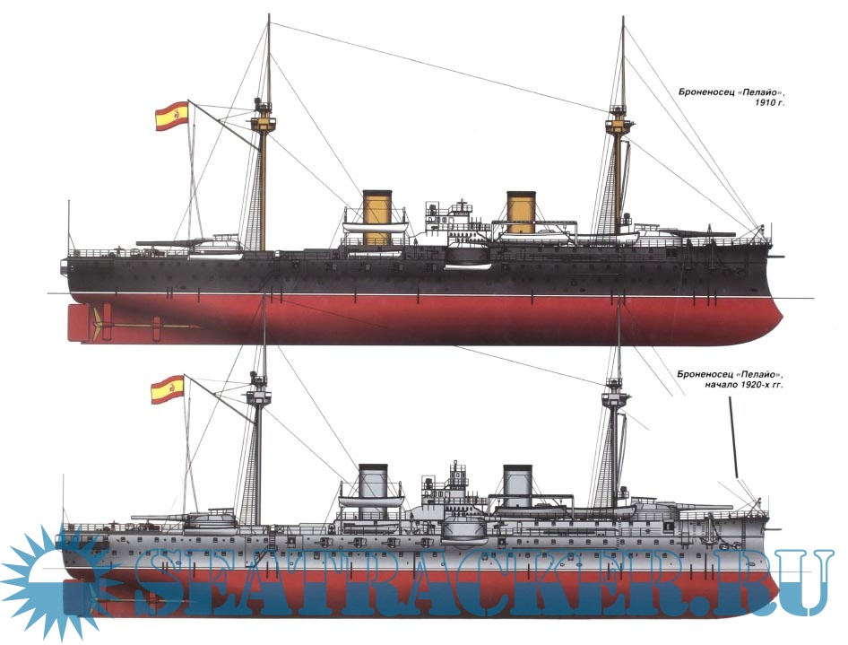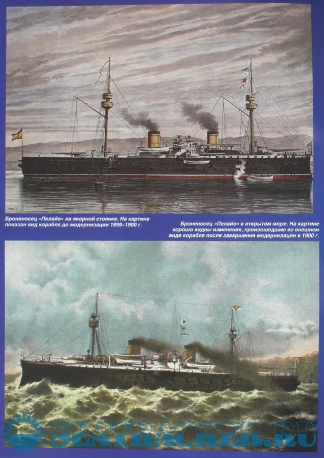 Описание: Начало 1892 г. броненосец встретил на якоре все на том же кадисском рейде, так как командование решило дать отдых экипажу. 16 января на корабль был назначен новый командир капитан 1 ранга Луис Пастотр. 19-го числа министерство выделило средства на постройку нового парового катера, взамен погибшего. Заказ на него выдали кадисскому арсеналу.