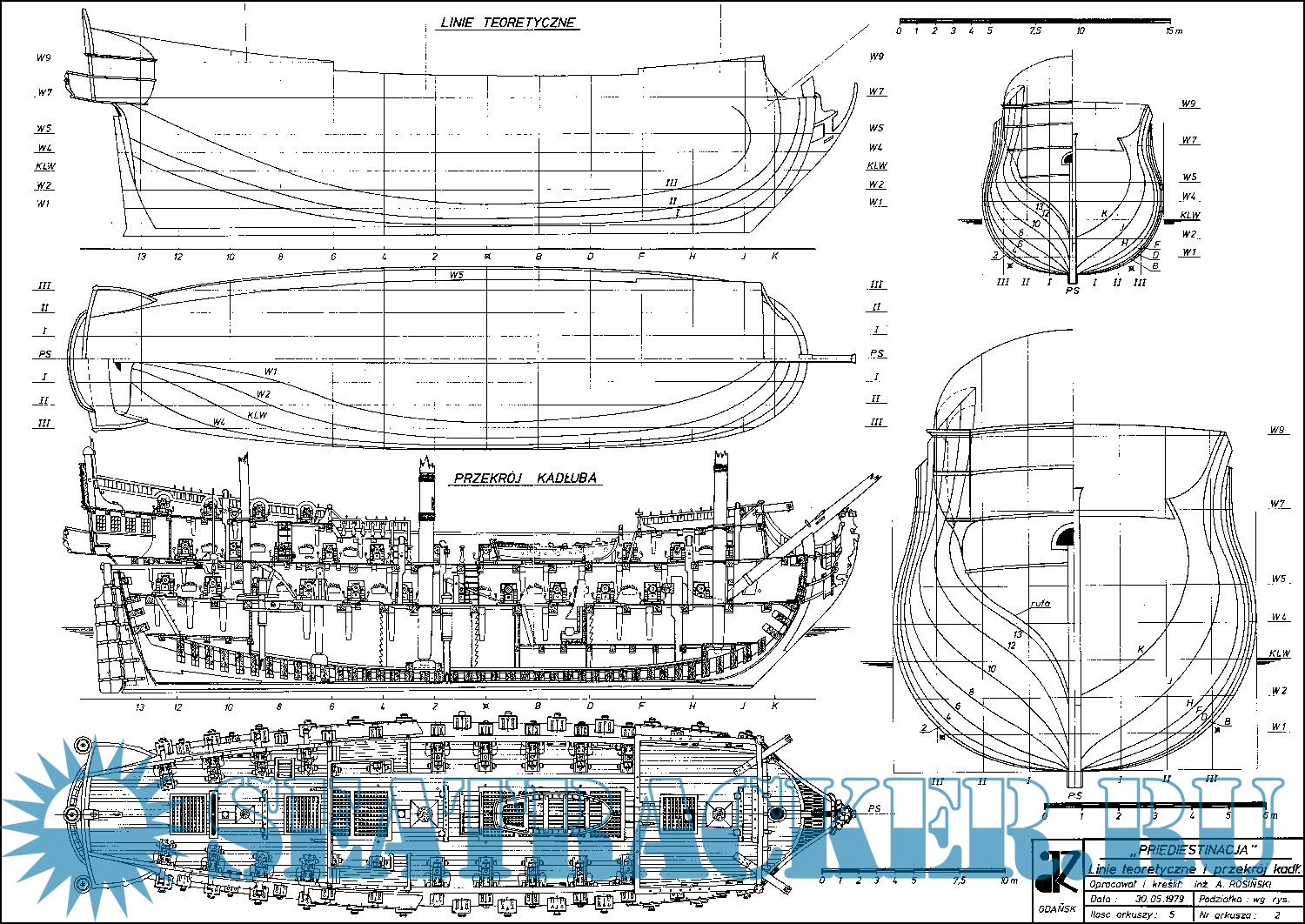 14 листов чертежей линейного парусного корабля "Гото Предестинация" (Россия)