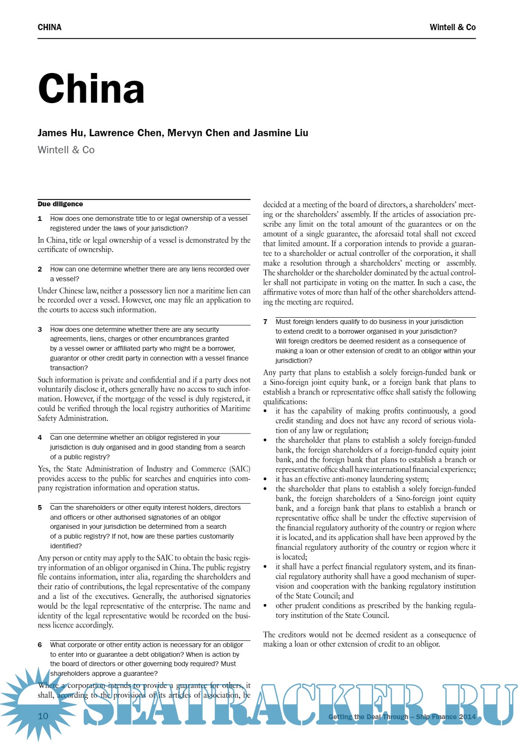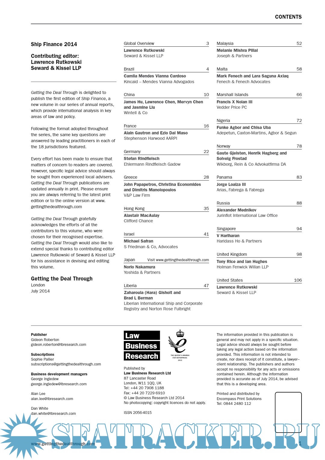 Description: Getting the Deal Through is delighted to publish the first edition of Ship Finance, a new volume in our series of annual reports, which provide international analysis in key areas of law and policy.