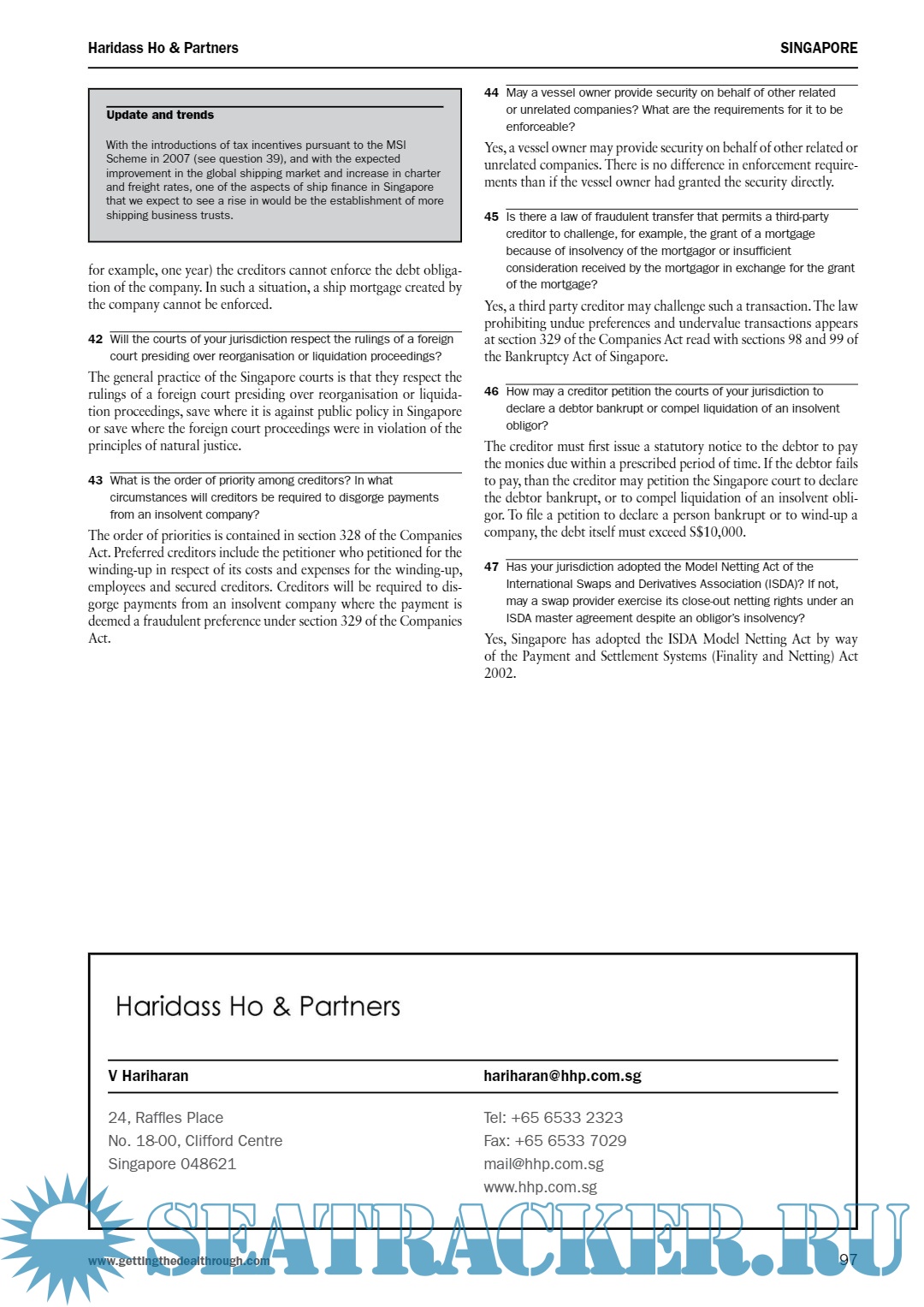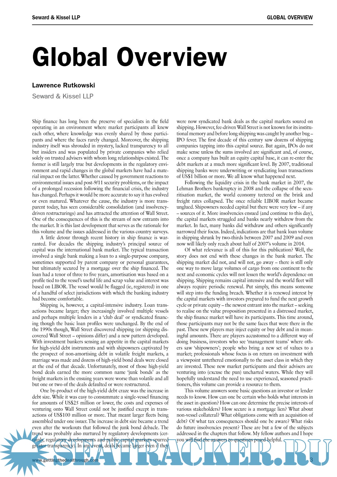 Every effort has been made to ensure that matters of concern to readers are covered. However, specific legal advice should always be sought from experienced local advisers. Getting the Deal Through publications are updated annually in print. Please ensure you are always referring to the latest print edition or to the online version at www.gettingthedealthrough.com Getting the Deal Through gratefully acknowledges the efforts of all the contributors to this volume, who were chosen for their recognised expertise. Getting the Deal Through would also like to extend special thanks to contributing editor Lawrence Rutkowski of Seward & Kissel LLP for his assistance in devising and editing this volume.