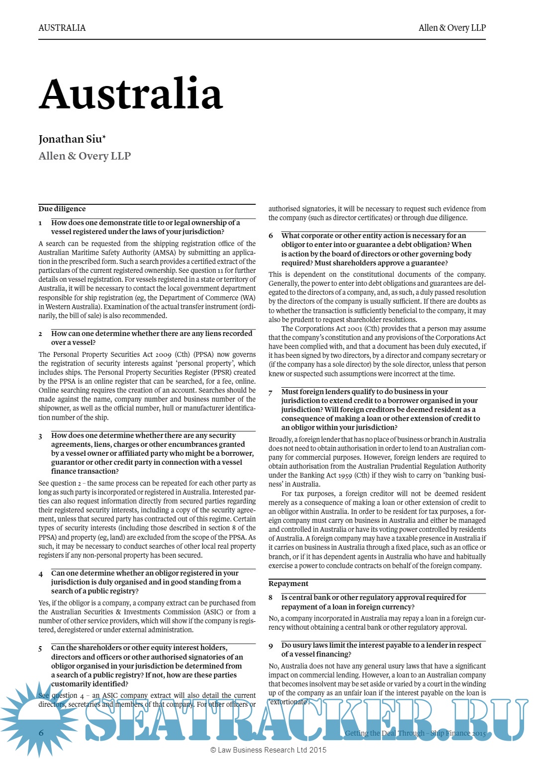 Year: 2015 Language: English Author: Lawrence Rutkowski Genre: Handbook Publisher: Gideon Roberton Edition: Second Edition ISBN: 2056-4015 Format: PDF Quality: eBook Pages count: 121 Description: Getting the Deal Through is delighted to publish the second edition of Ship Finance, which is available in print, as an e-book, via the GTDT iPad app, and online at www.gettingthedealthrough.com. Getting the Deal Through provides international expert analysis in key areas of law, practice and regulation for corporate counsel, cross-border legal practitioners, and company directors and officers. Throughout this edition, and following the unique Getting the Deal Through format, the same key questions are answered by leading practitioners in each of the 21 jurisdictions featured. Our coverage this year includes new chapters on Australia, Cyprus, Indonesia, Italy and the UAE. Getting the Deal Through titles are published annually in print. Please ensure you are referring to the latest edition or to the online version at www.gettingthedealthrough.com. Every effort has been made to cover all matters of concern to readers. However, speciʩc legal advice should always be sought from experienced local advisers. Getting the Deal Through gratefully acknowledges the efforts of all the contributors to this volume, who were chosen for their recognised expertise. We also extend special thanks to Lawrence Rutkowski of Seward & Kissel LLP, for his continued assistance with this volume.