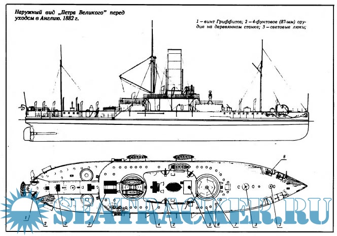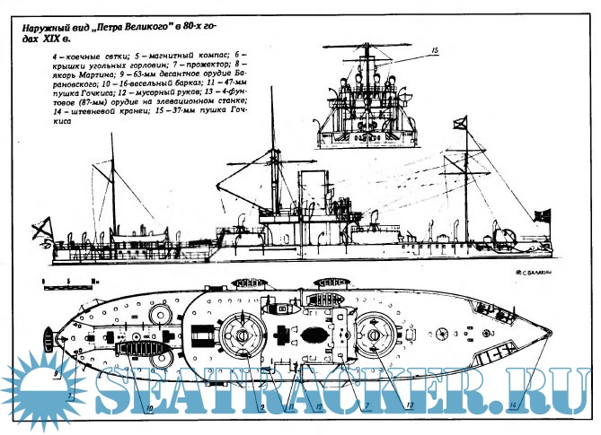 Броненосец "Петр Великий" 1881 год (модель из бумаги) - Громых Юрий [2003, JPEG]