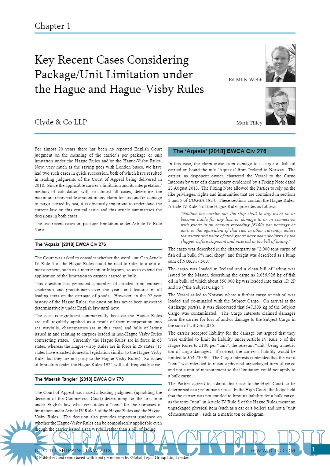 All chapters are written by leading shipping lawyers and industry specialists, and we are extremely grateful for their excellent contributions.