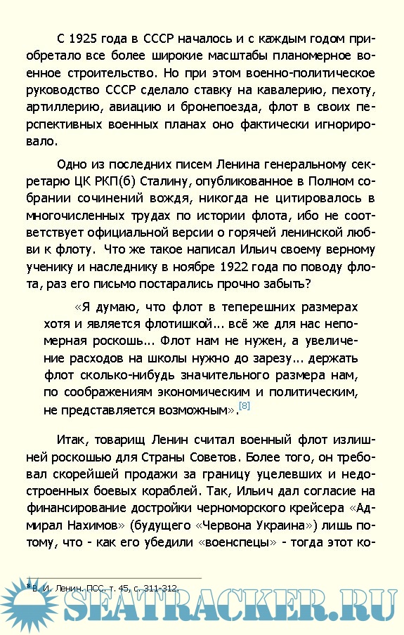 Как и вся история СССР периода 1917—1991 гг., подлинная картина строительства советского флота скрыта туманом многочисленных легенд и мифов, закамуфлирована всякого рода «неточностями» и откровенной ложью Предлагаемая работа является попыткой объективного рассмотрения этой картины. Ее основу составили опубликованные свидетельства непосредственных участников описываемых событий.
